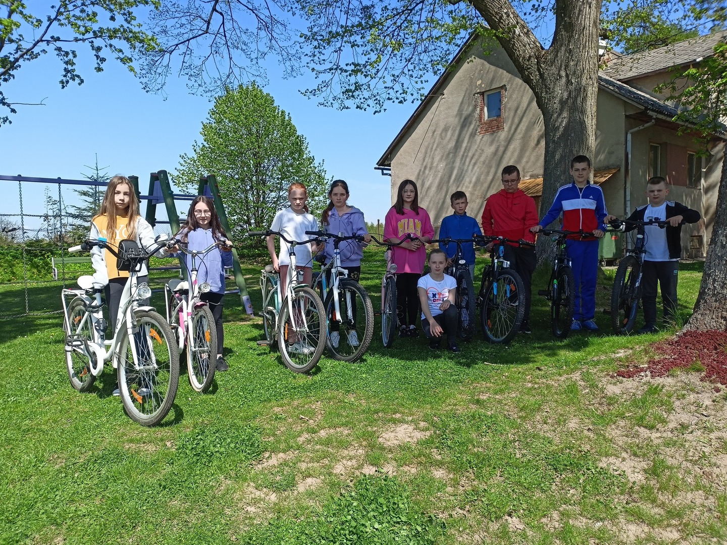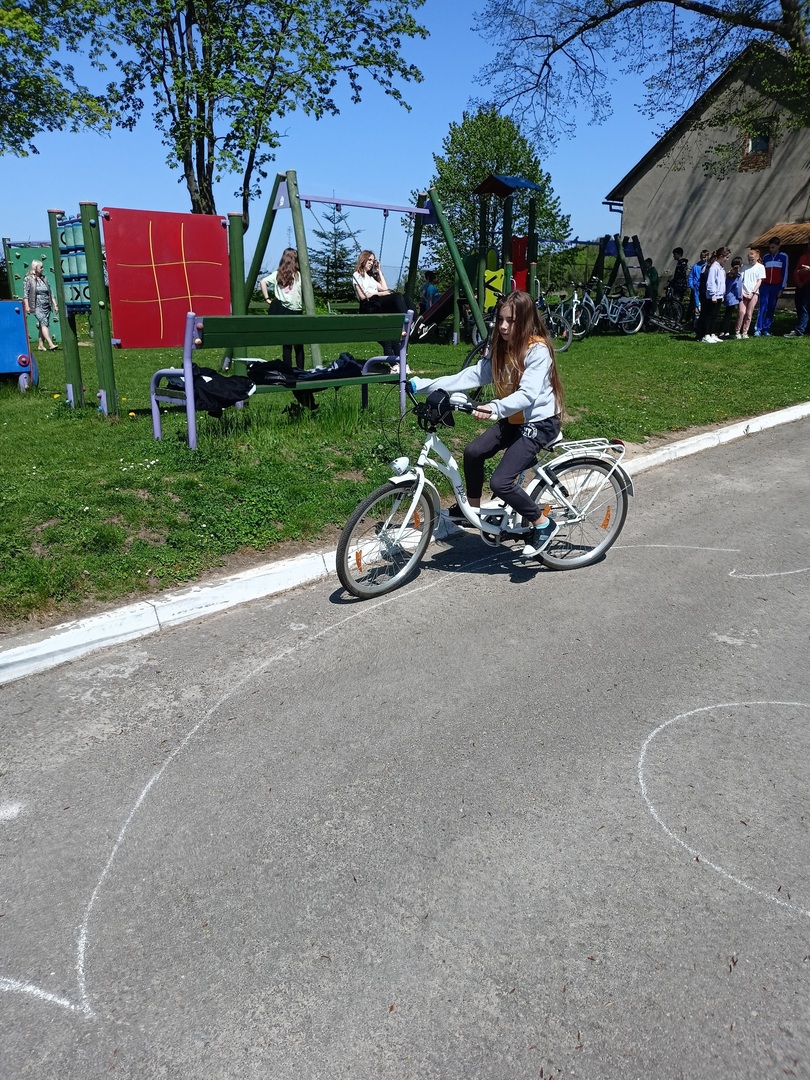 9 maja 2022r w naszej szkole odbył się egzamin na kartę rowerową. Składał się on z części teoretycznej i praktycznej. Na początku uczniowie rozwiązywali test ze znajomości zasad i przepisów ruchu drogowego, następnie wykazali się znajomością obsługi technicznej roweru i pomocy przedmedycznej oraz pokonali tor jazdy tj. włączanie się do ruchu, sygnalizowanie zamiaru wykonania manewru, zatrzymanie, jazda slalomem i tzw. ósemce. Wszyscy pomyślnie zdali egzamin na swoje pierwsze „prawo jazdy”.