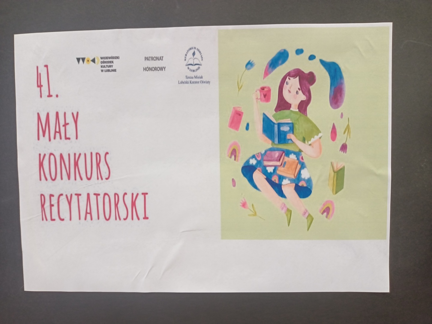 Dnia 12.05.2022r.o godz.10.00, w sali widowiskowej Gminnego Centrum Kultury w Polichnie odbyły się Eliminacje Gminne do 41 Małego Konkursu Recytatorskiego. Repertuar uczestnika stanowił jeden wiersz lub fragment prozy, nie prezentowany w innych konkursach, tematyka tekstu była dowolna.