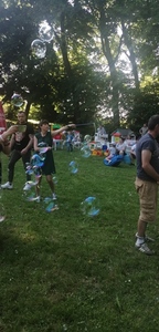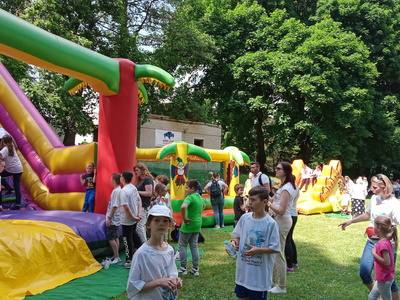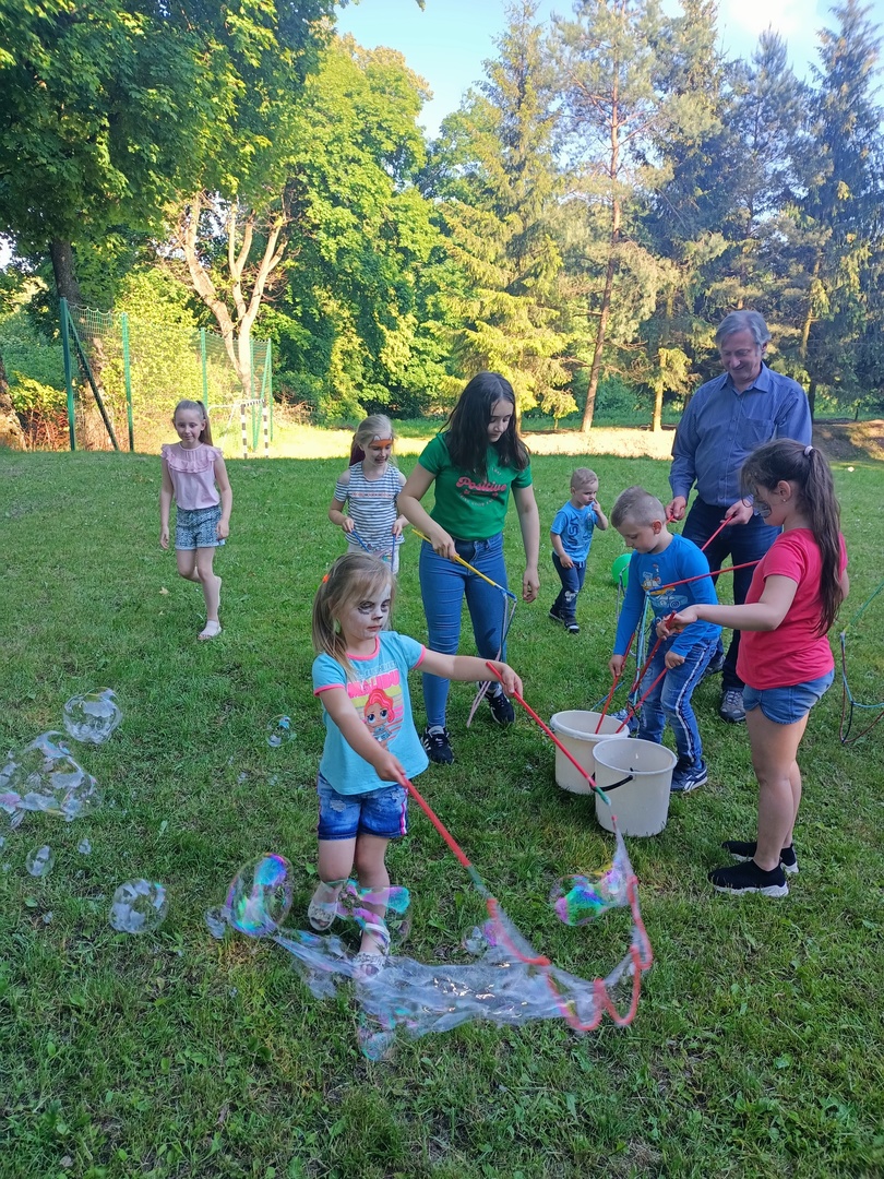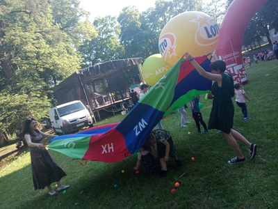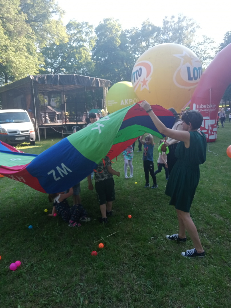 Mnóstwo atrakcji czekało również najmłodszych uczestników. Dzieci mogły wyszaleć się na dmuchanych zjeżdżalniach, odpocząć w strefie relaksu i zabaw konstrukcyjnych. Mogły dać upust swojej fantazji i wyobraźni malując farbami, a także sprawdzić się w kąciku robotyki. Wielkim powodzeniem cieszyło się malowanie twarzy, bańki mydlane, fotobudka z akcesoriami i chusta animacyjna.