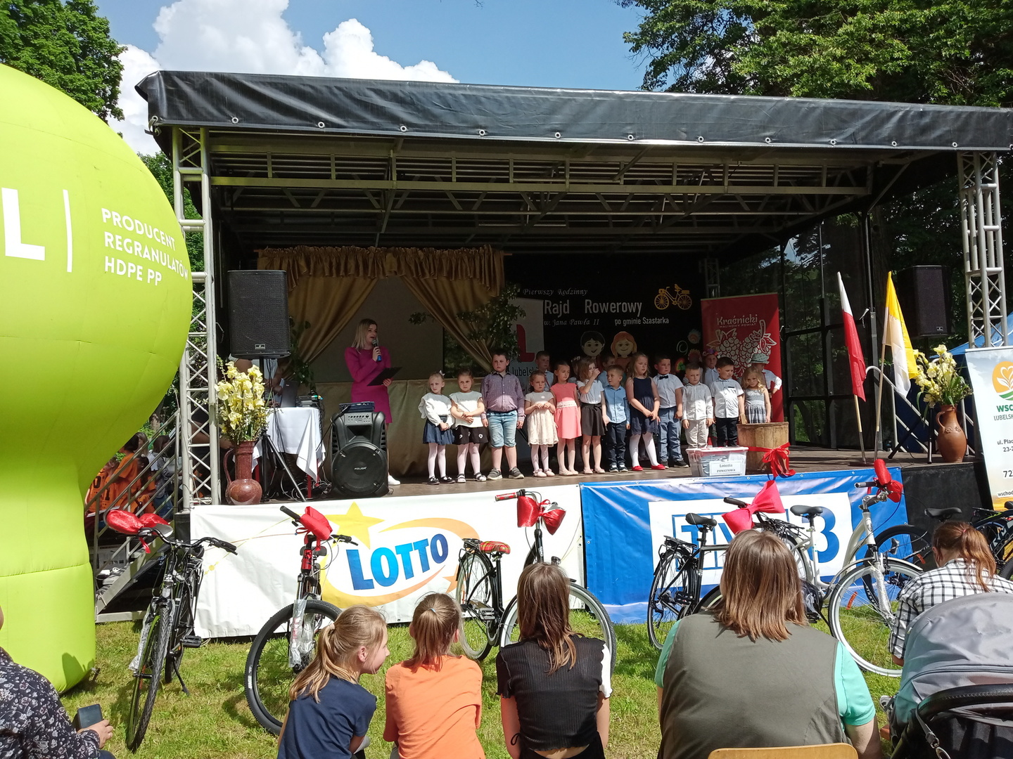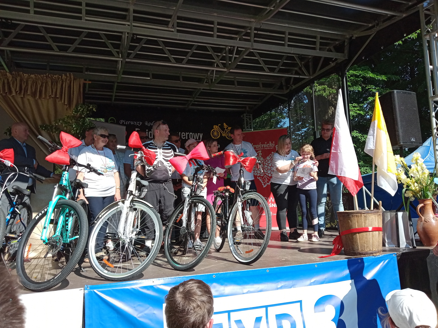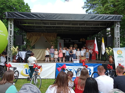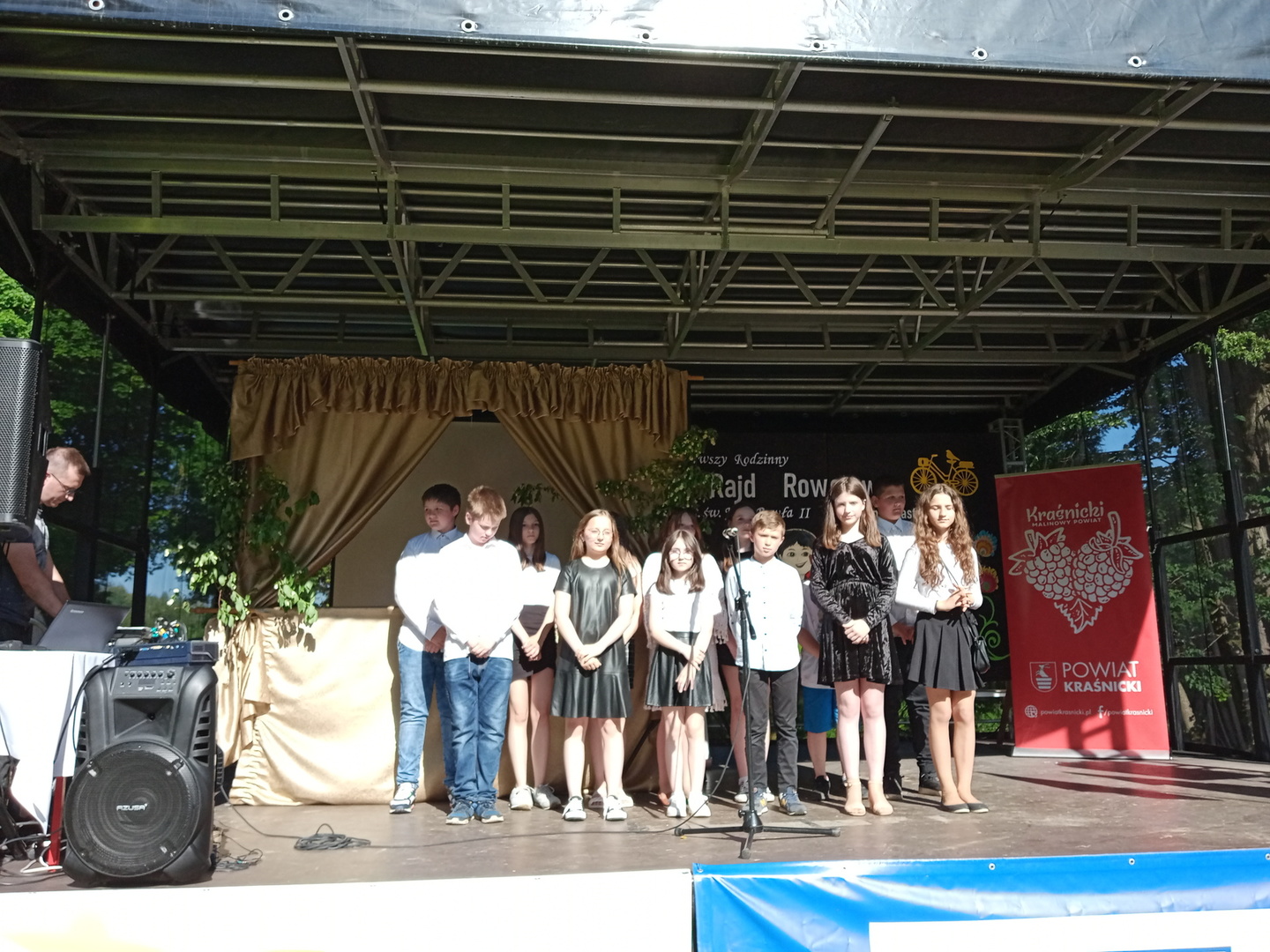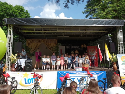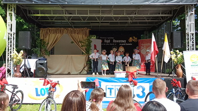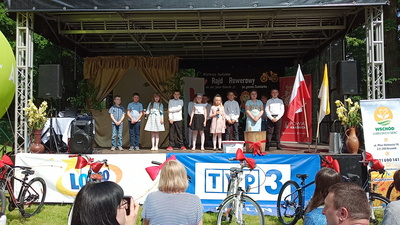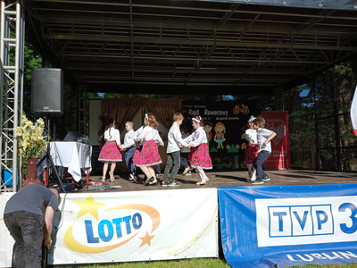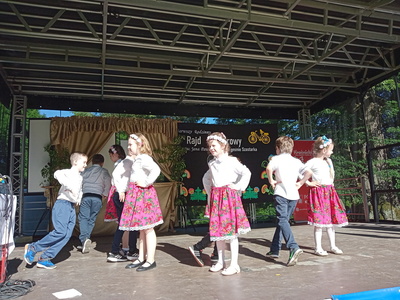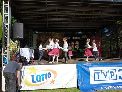 Następnie odbyło się z niecierpliwością wyczekiwane losowanie rowerów, a po nim ostatni punkt programu artystycznego przygotowanego przez uczniów naszej szkoły: taniec polka, koncert patriotyczny, a także została przedstawiona niezwykła historia, atrakcje, kultura i obyczaje Blinowa. Miłą rozrywką był występ Zespołu Śpiewaczego Majdaniacy oraz taniec w wykonaniu grupy tanecznej z GCK w Polichnie.
