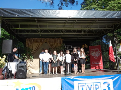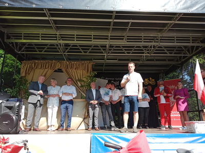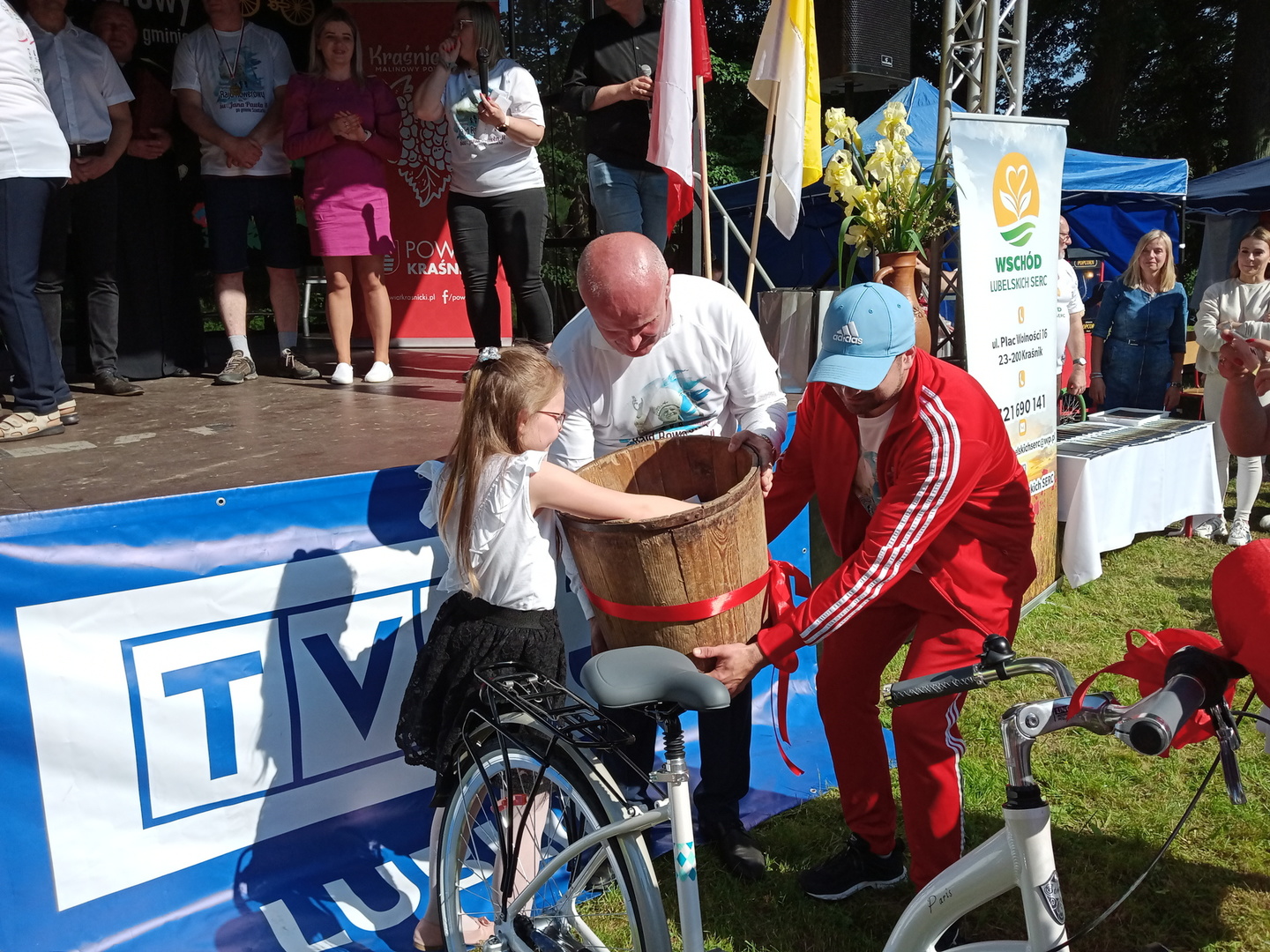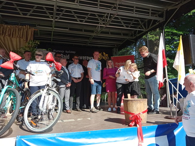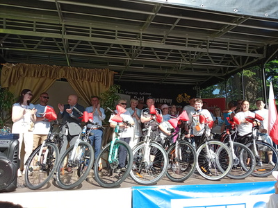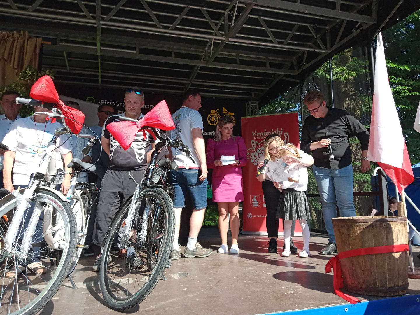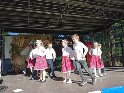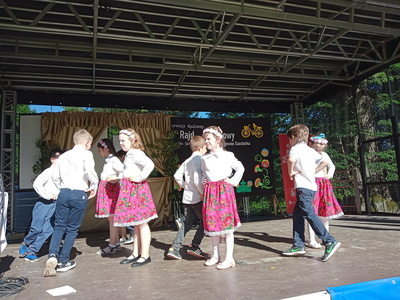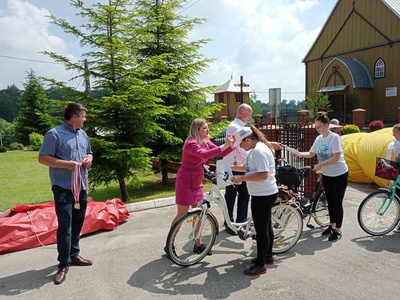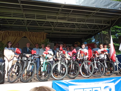 Następnie odbyło się z niecierpliwością wyczekiwane losowanie rowerów, a po nim ostatni punkt programu artystycznego przygotowanego przez uczniów naszej szkoły: taniec polka, koncert patriotyczny, a także została przedstawiona niezwykła historia, atrakcje, kultura i obyczaje Blinowa. Miłą rozrywką był występ Zespołu Śpiewaczego Majdaniacy oraz taniec w wykonaniu grupy tanecznej z GCK w Polichnie.