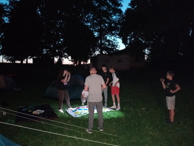 Biwak rozpoczął się o godzinie 19:00, wtedy to rodzice przywieźli uczestników na miejsce zbiórki i pomogli rozbić namioty