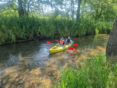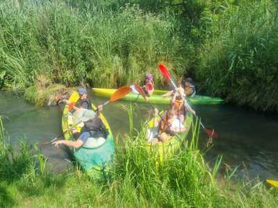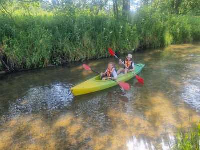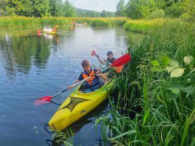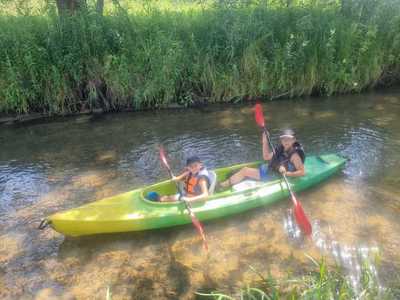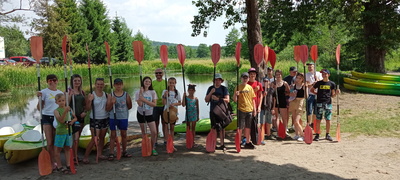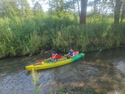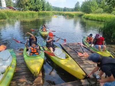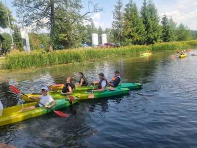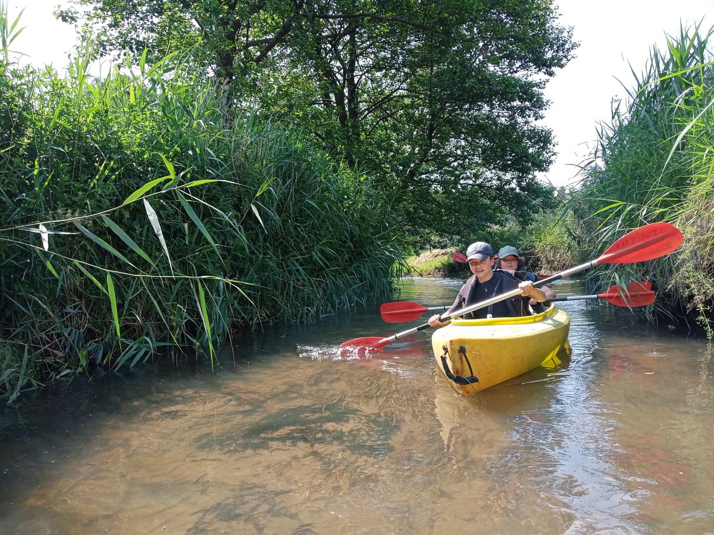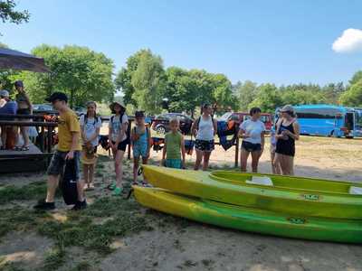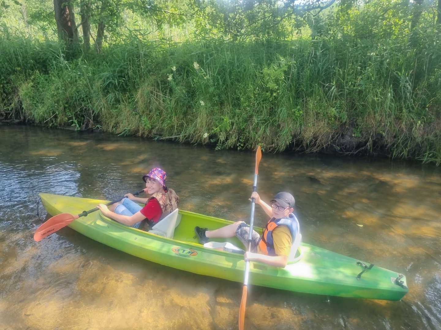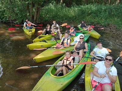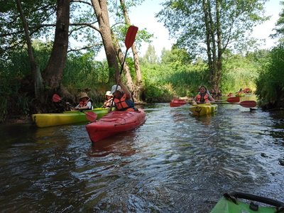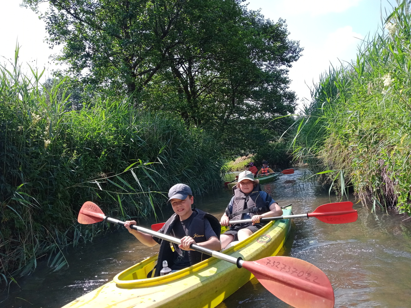 W czwartek 30 czerwca o godz. 8.00 wyruszyliśmy na spływ kajakowy pt. „ Powitanie wakacji na rzece”. Do Przystani nad Wieprzem w Hutkach dojechaliśmy około godziny 10:00. Na samym początku zostały przekazane przez instruktora zasady płynięcia kajakiem. Każdy, opatrzony w kamizelkę ratunkową i wiosło, wesoło spędził 1,5 godziny podróży podczas spływu. Przy pięknej słonecznej pogodzie wszyscy uczestnicy raczyli się urokami naszego Roztoczańskiego krajobrazu. Początki były dla niektórych nieco trudne, ponieważ nie wszyscy uczniowie mieli przyjemność płynąć kajakiem. Oprócz dobrej zabawy, dzieci mogły pokonać swoje słabości. Podczas spływu nurt rzeki był spokojny a głębokość nie stwarzała realnego zagrożenia.