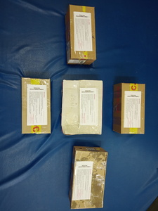 Pieniądze zostały posegregowane, policzone i zważone oraz umieszczone w woreczkach. Uszykowano