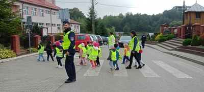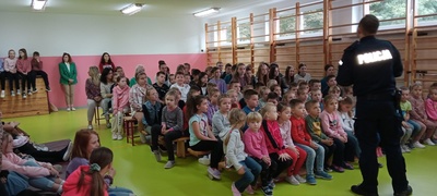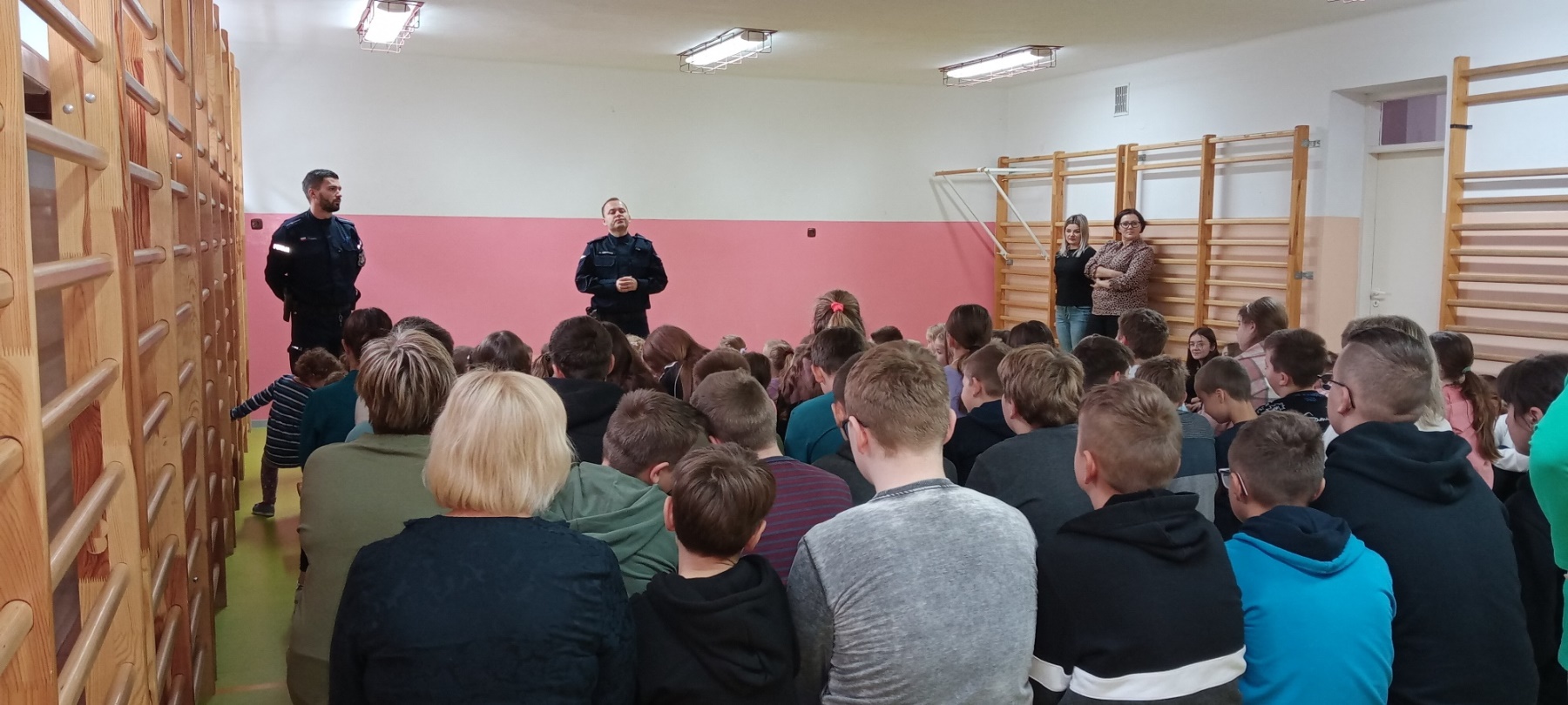 Wraz z nowym rokiem szkolnym powrócił temat bezpieczeństwa naszych dzieci na drogach. Stąd też 23 września gościliśmy funkcjonariuszy Komendy Powiatowej Policji w Kraśniku p. sierż. sztab. Sebastiana Janickiego i p. mł. asp. Pawła Cieliczko, którzy w ramach akcji „Bezpieczna droga do szkoły” przeprowadzili pogadankę wspierającą edukację na temat bezpieczeństwa dzieci i młodzieży w rejonach szkół oraz na drogach.