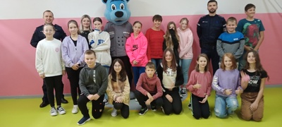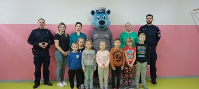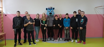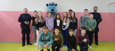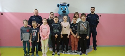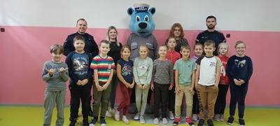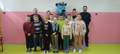 Dzieci aktywnie uczestniczyły w spotkaniu, zadawały wiele pytań, ale i na wiele potrafiły wyczerpująco odpowiedzieć. Uczniowie wykazali się dobrą znajomością znaków drogowych i zasad przechodzenia przez ulicę. Na zakończenie pogadanki wszystkie klasy zrobiły sobie zdjęcie z maskotką policyjną - Misiem Inspektorem.