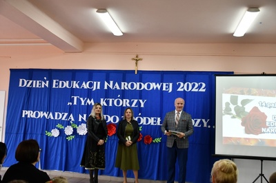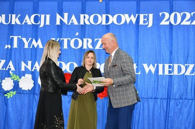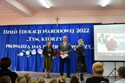 W czasie uroczystości głos zabrał Pan Artur Jaskowski, który złożył życzenia i podziękowania Gronu Pedagogicznemu oraz pracownikom obsługi. Swój występ zakończył wręczeniem Nagrody Wójta, Pani Dyrektor Ilonie Stolarz. Następnie nagrody otrzymali pracownicy szkoły. Pani Dyrektor podziękowała nagrodzonym za ich całoroczny wysiłek i wkład włożony w pracę z uczniami i w rozwój szkoły.