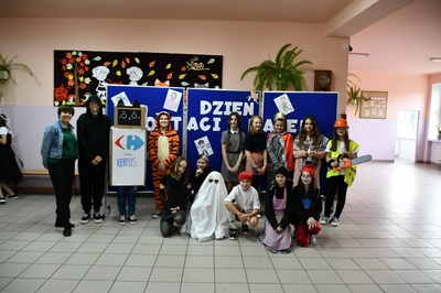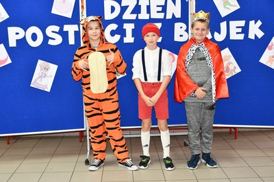 W naszej szkole 7 listopada obchodziliśmy Międzynarodowy Dzień Postaci z Bajek. Jest to jednocześnie dzień urodzin Walta Disney'a - jednego z najbardziej znanych producentów filmów dla dzieci. Głównym celem wydarzenia było popularyzowanie tradycyjnych bajek, gdzie dobro zawsze wygrywa. Akcję zorganizował Samorząd Uczniowski, bibliotekarka przy współudziale i zaangażowaniu nauczycieli klas 0-3. Uczniowie klas 1-3 zajęcia w tym dniu zaczęły od wysłuchania baśni J.Ch. Andersena oraz braci Grimm czytanych przez nauczycieli wychowawców. Dzieci chętnie przebrały się za ulubione postacie z bajek. Co ciekawe w klasach przebrani byli prawie wszyscy uczniowie . Ale nie tylko maluchy się przebrały. Również uczniowie klas 4-8 wcielili się w bajkowe postacie. Cóż to był za piękny widok! Podczas przerwy korytarzami przechadzały się przepiękne wróżki, księżniczki, rycerze, koty, misie, superbohaterowie i wiele, wiele innych, znanych postaci. Królowały nie tylko gotowe kostiumy. Wiele dzieci wraz z rodzicami własnoręcznie wykonało przepiękne maski oraz przebrania. Tak liczne zaangażowanie dzieci i dorosłych dowodzi, że bajki są nieśmiertelne i łączą pokolenia. Z pewnością był to niesamowity i niezapomniany dzień, ponieważ uśmiech królował na wszystkich twarzach.
