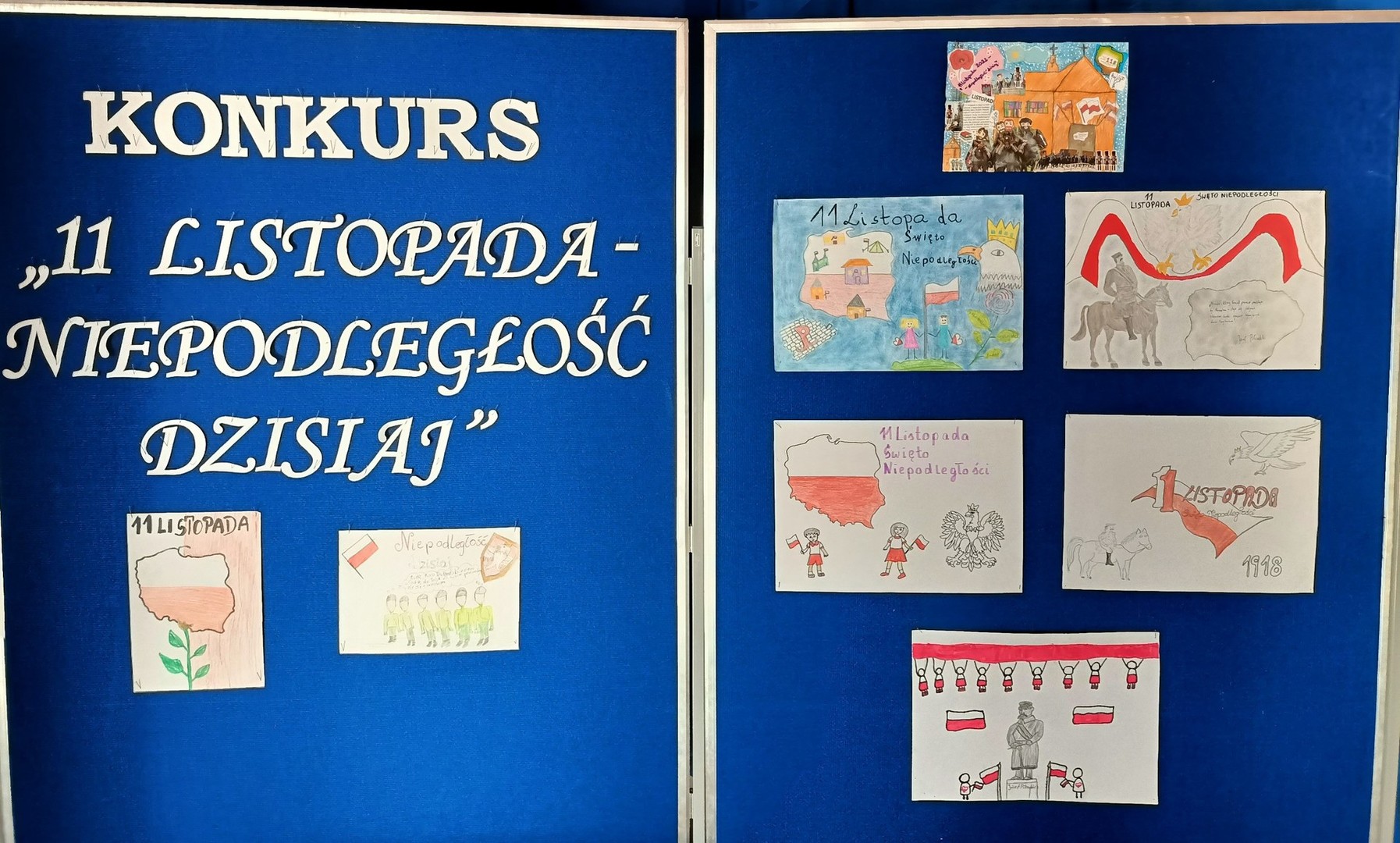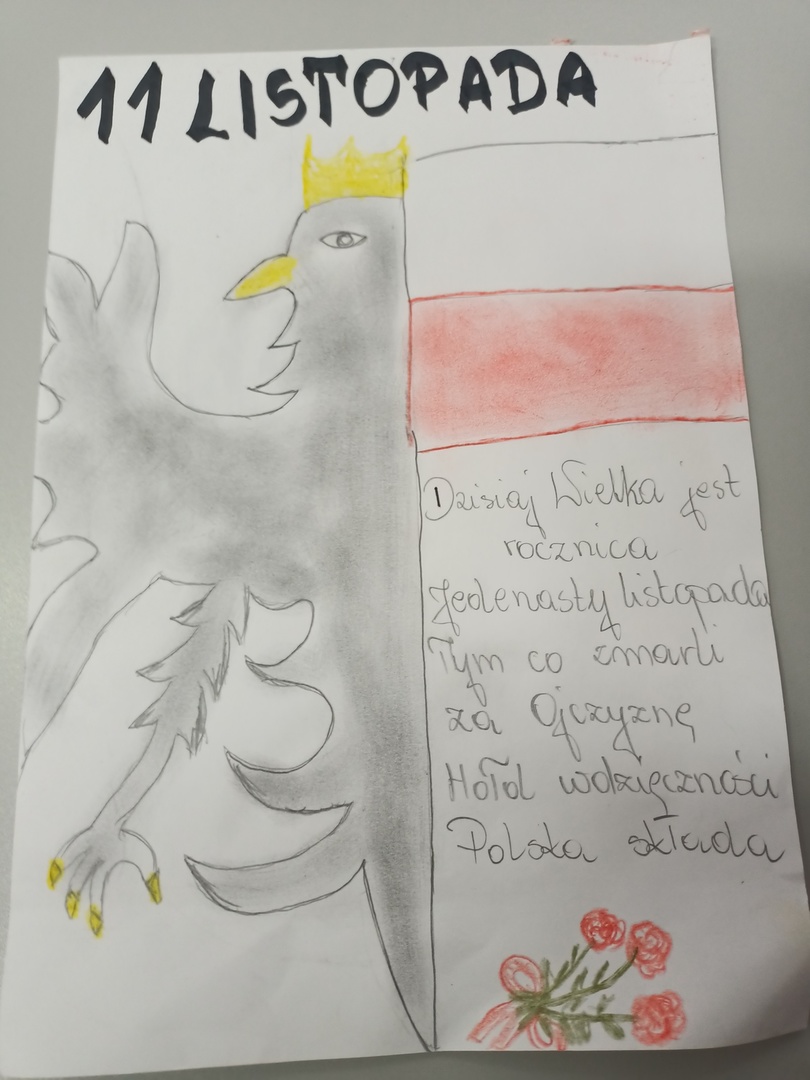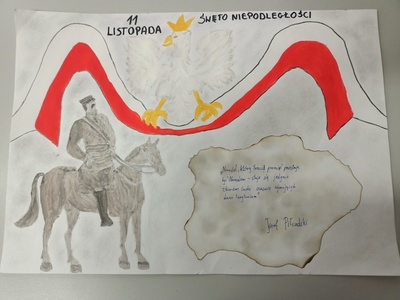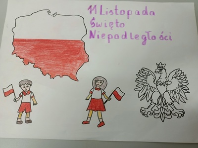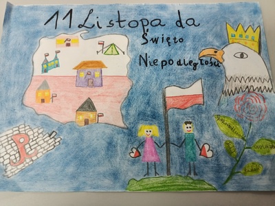 Z okazji 104. rocznicy odzyskania przez Polskę niepodległości w naszej szkole został przeprowadzony konkurs plastyczny „11 listopada – niepodległość dzisiaj”.