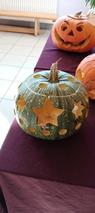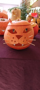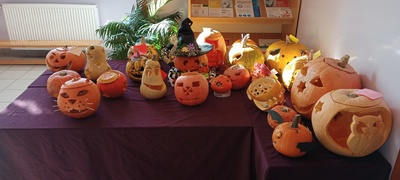 Kończy się już jesień, a wraz z nim chłodne, dni spod znaku pewnego pomarańczowego warzywa. Tworzenie lampionów z dyń to wspaniały zwyczaj dekorowania naszych domów czy ogrodów. Dlatego w tym roku chcieliśmy aby nasza szkoła wyglądało trochę inaczej. Wystawa z wykonywanych przez dzieci i rodziców dyniowych prac konkursowych, których z każdym dniem przybywało, można było podziwiać na holu naszej szkoły oraz przed budynkiem. Ten, kto chciał poznać inne oblicza dyni, na pewno się nie zawiódł. Komisja konkursowa miała nie lada problem przy wyborze najciekawszych pomysłów, dlatego też wszystkie prace zostały wyróżnione a ich wykonawcy nagrodzeni upominkami. Koordynatorem konkursu był Samorząd Uczniowski. W konkursie wzięły udział wszystkie klasy. Zainteresowanie konkursem okazało się być ogromne. Na wystawie znajdowało się dużo dyń, które można było podziwiać w holu szkoły, na niecodziennej wystawie. Uczestnicy zaskoczyli organizatorów swoją pomysłowością oraz kreatywnością.
