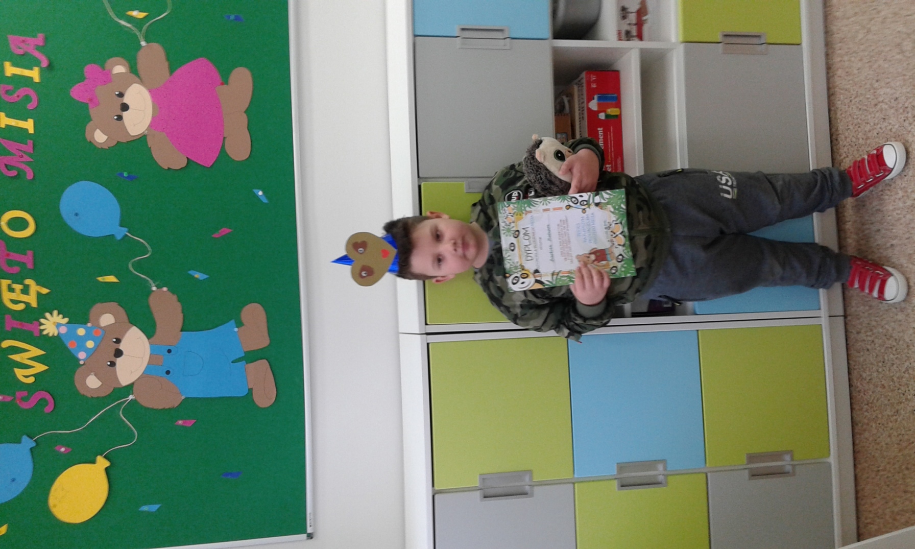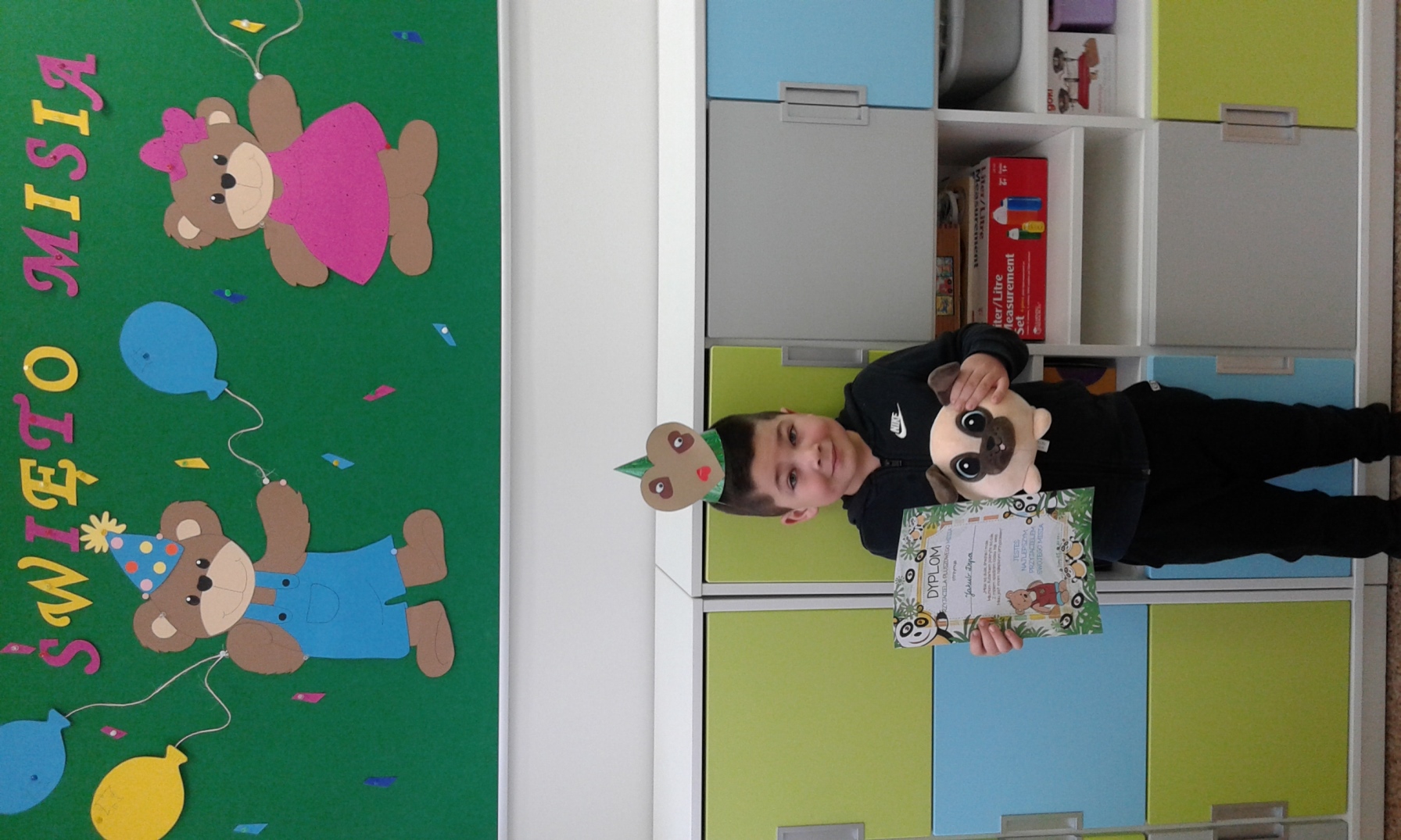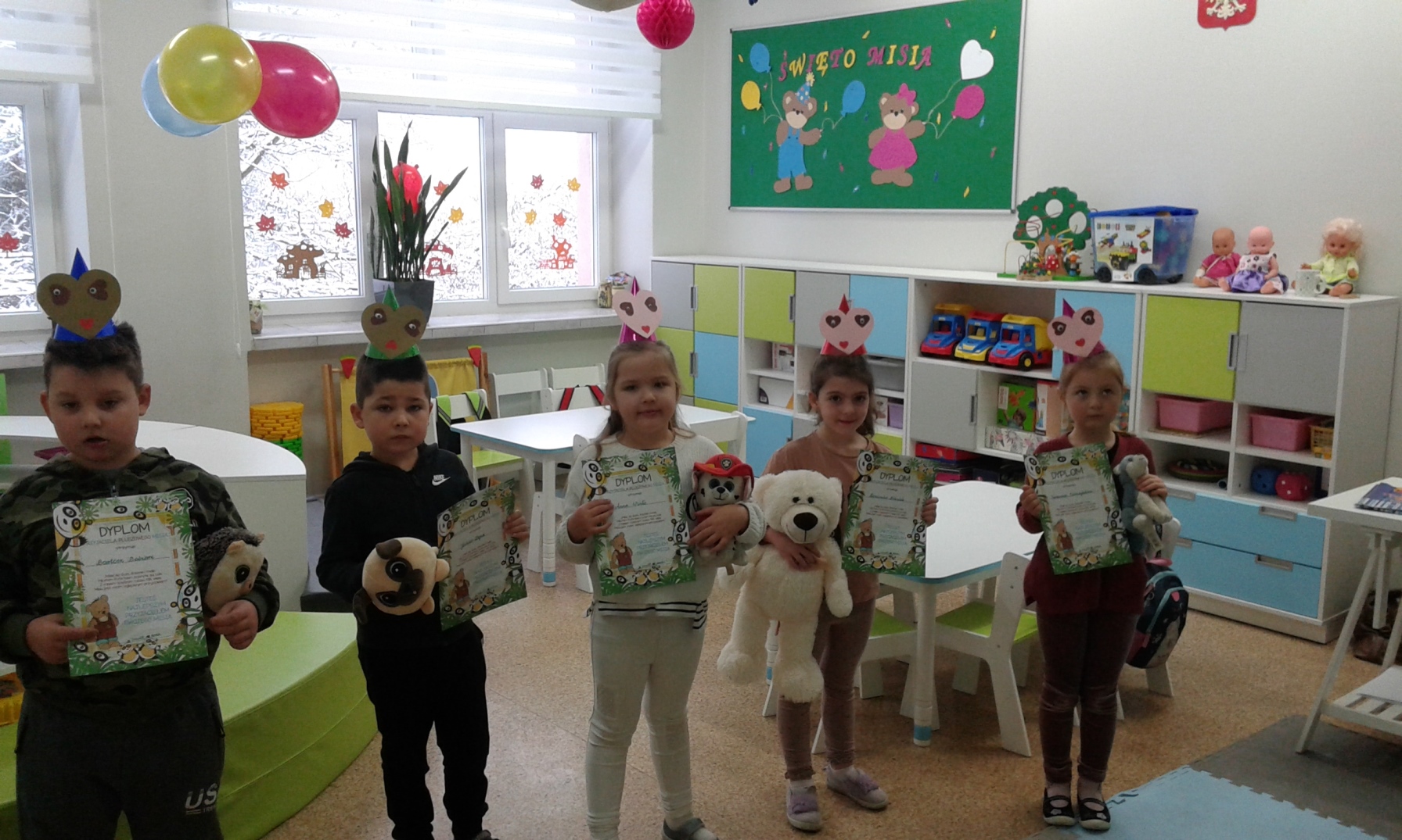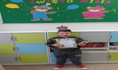 Tego dnia wszystkie dzieci przyszły do przedszkola ze swoimi maskotkami i chociaż różniły się one między sobą, każda z nich była piękna i wyjątkowa. Oczywiści było dużo wesołych zabaw przy muzyce, zagadek oraz zajęć związanych z pluszakami. Dzieci oglądały prezentację i bajki, wykonywały prace plastyczne, degustowały pyszne, misiowe słodkości. Za wielki entuzjazm i troskliwą opiekę nad misiami otrzymały dyplomy Przyjaciela Pluszowego Misia. Oczywiście nie ma w tym nic dziwnego, bo duży czy mały, bury, kolorowy, milutki, w kubraczku, czy z kokardką ... ot, po prostu miś.