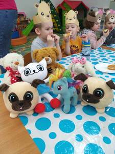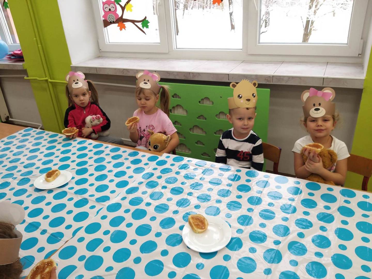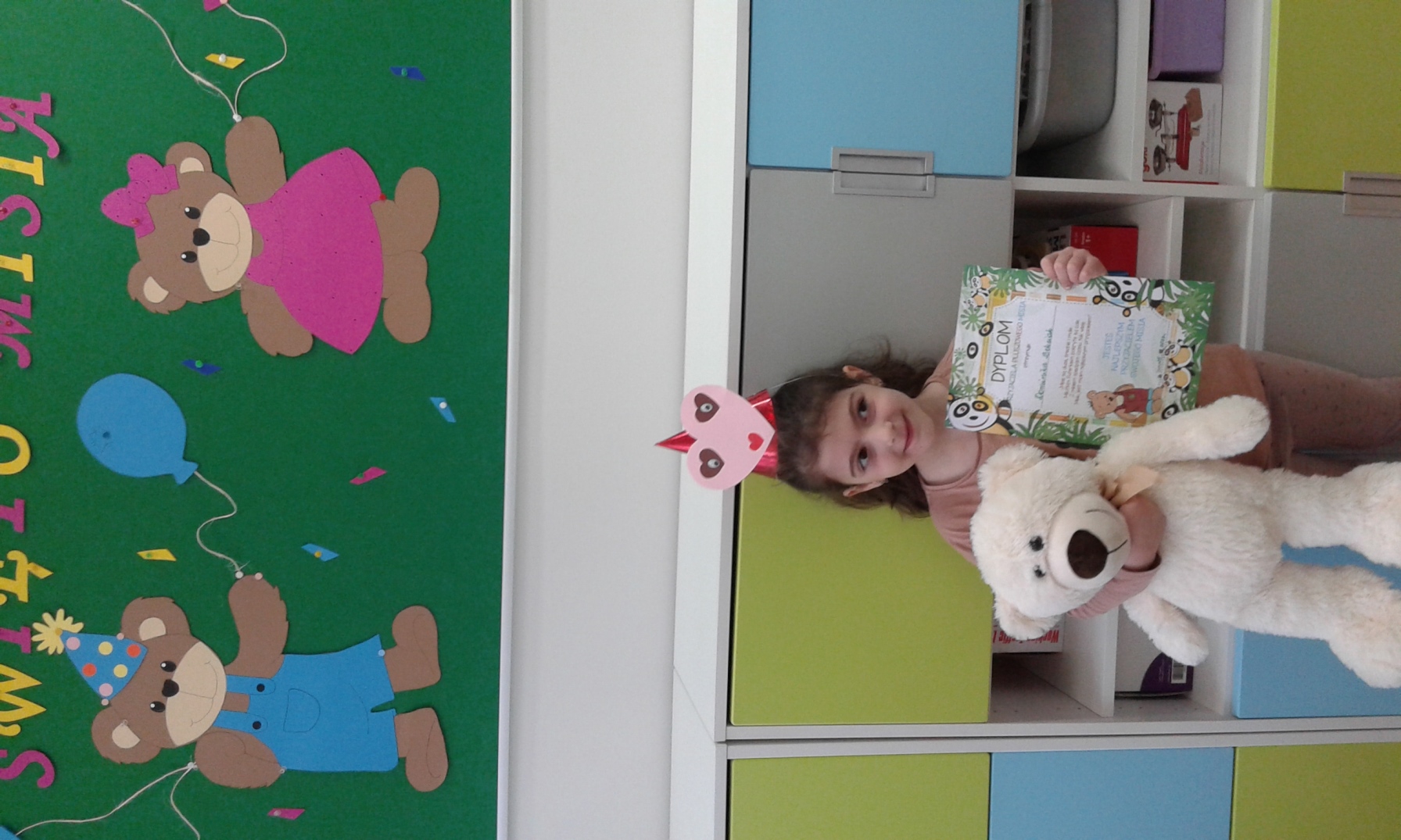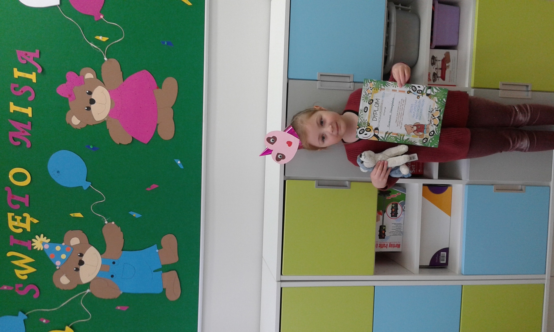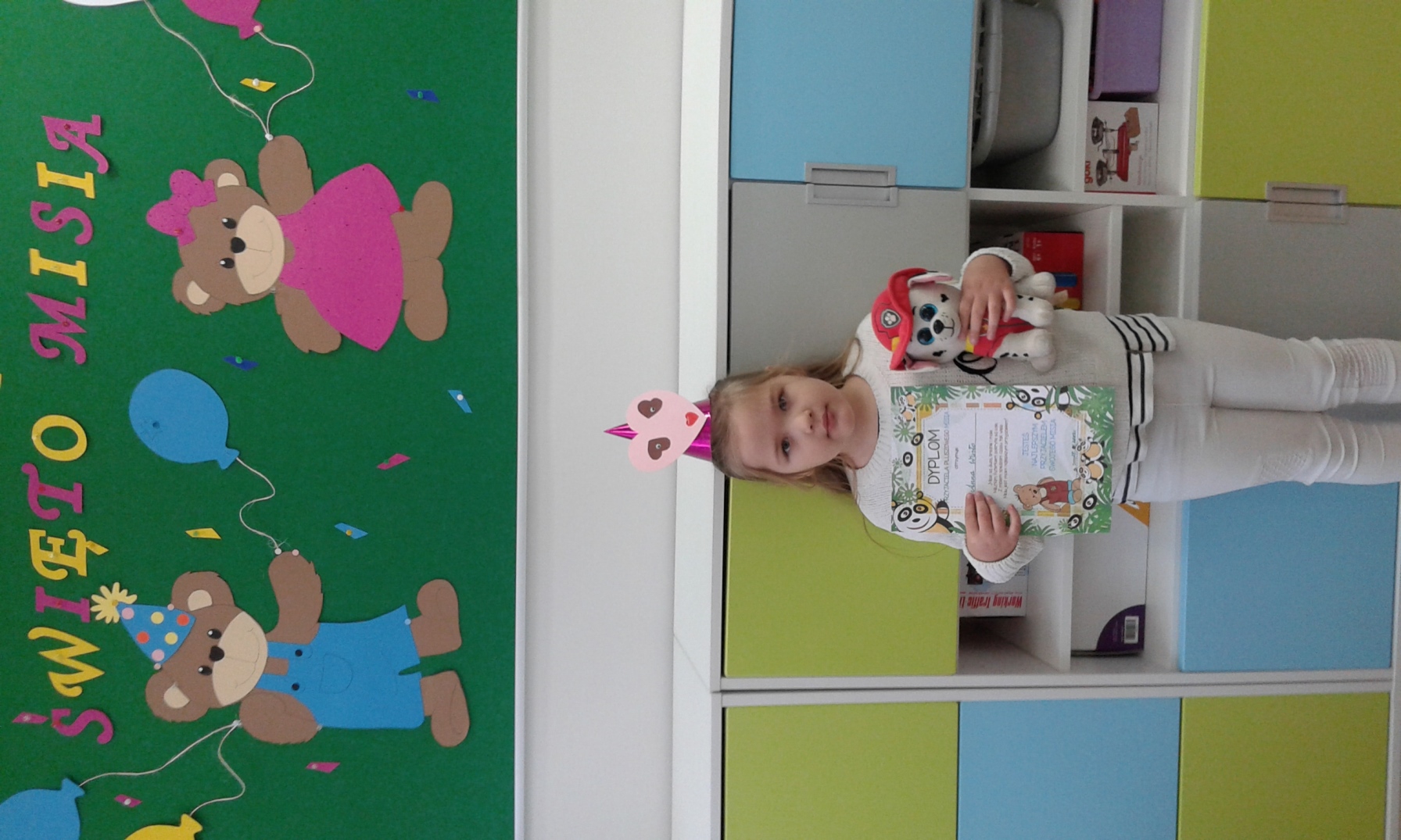 Tego dnia wszystkie dzieci przyszły do przedszkola ze swoimi maskotkami i chociaż różniły się one między sobą, każda z nich była piękna i wyjątkowa. Oczywiści było dużo wesołych zabaw przy muzyce, zagadek oraz zajęć związanych z pluszakami. Dzieci oglądały prezentację i bajki, wykonywały prace plastyczne, degustowały pyszne, misiowe słodkości. Za wielki entuzjazm i troskliwą opiekę nad misiami otrzymały dyplomy Przyjaciela Pluszowego Misia. Oczywiście nie ma w tym nic dziwnego, bo duży czy mały, bury, kolorowy, milutki, w kubraczku, czy z kokardką ... ot, po prostu miś.