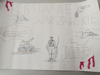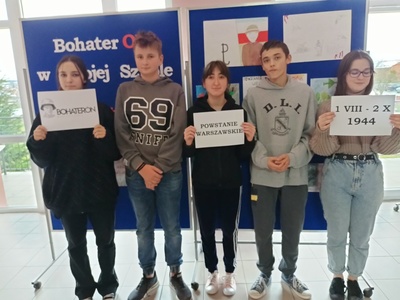 Uczniowie klas VII-VIII zobaczyli film edukacyjny z kanału YouTube „Co za historia! – Powstanie Warszawskie”, a następnie zapoznali się z materiałami na stronie głównej projektu, przykładowymi biogramami powstańców. Złożyli życzenia Powstańcom dokonując wpisów na portalu www. dumnizpowstańców.pl – wirtualnym miejscu pamięci o Powstańcach i Powstaniu Warszawskim.