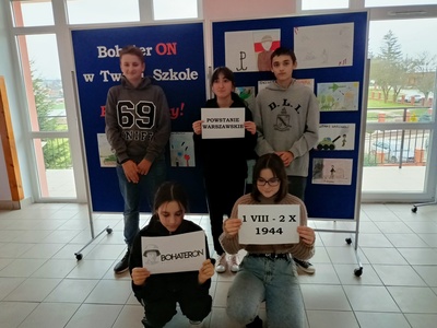 W październiku i listopadzie 2022 roku uczniowie naszej szkoły wzięli udział w projekcie „BohaterON w Twojej Szkole. Włącz historię!” To ogólnopolska kampania o tematyce historycznej mająca na celu upamiętnienie i uhonorowanie uczestników Powstania Warszawskiego oraz promocję historii Polski XX wieku. Projekt był realizowany na lekcjach historii w klasach IV-VIII w oparciu o materiały edukacyjne organizatora.
