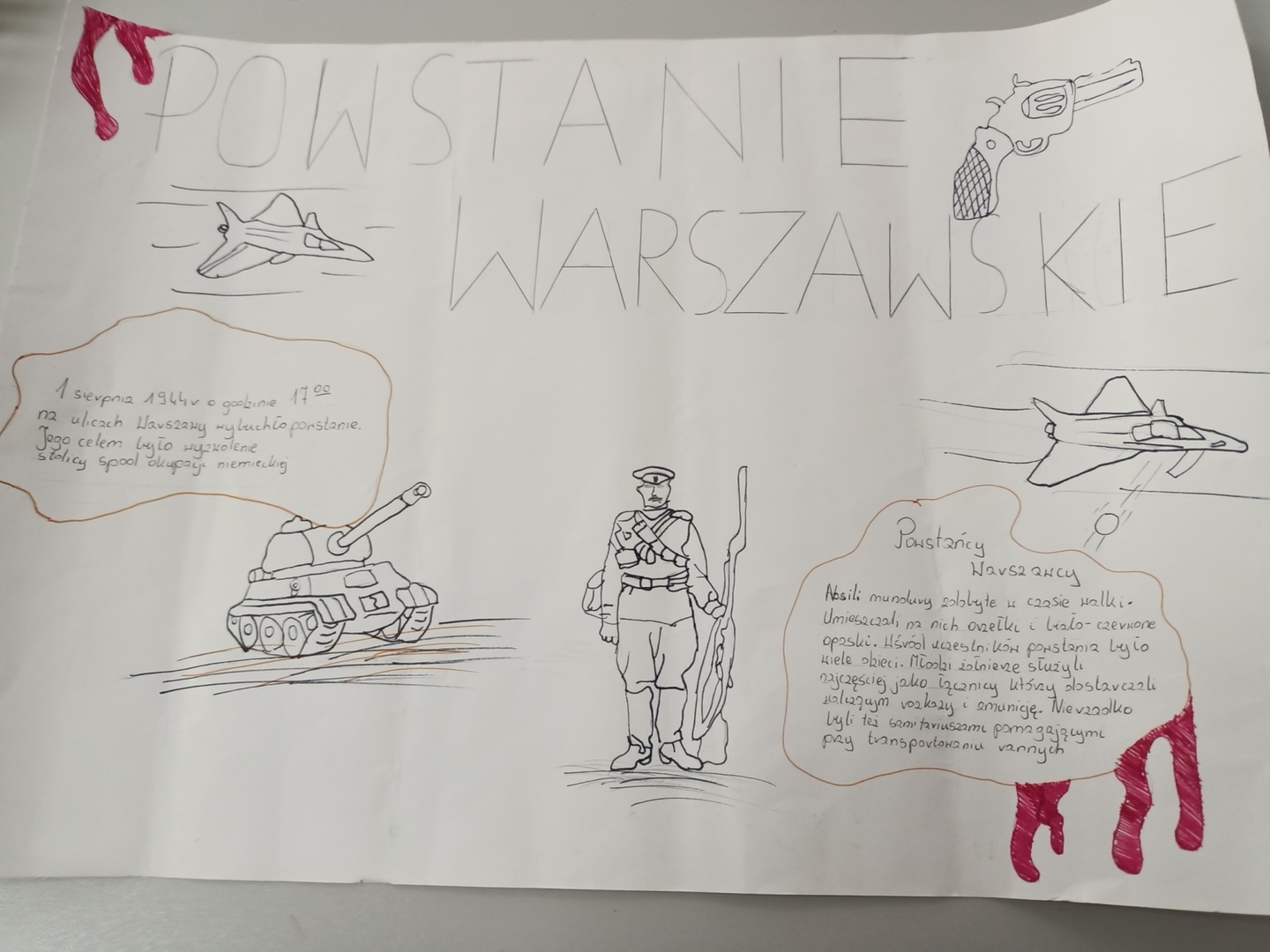 Chętni uczniowie klas V-VIII przygotowali po zajęciach dodatkowo w formie plakatów informacje o powstaniu i jego uczestnikach. Projekt został przyjęty przez uczniów z dużym zainteresowaniem. Poznając historię powstańców, także tych najmłodszych, mieli oni okazję wzmacniać poczucie swojej tożsamości narodowej i postawy patriotyczne.