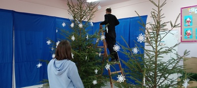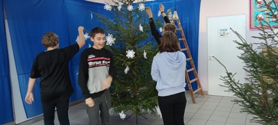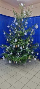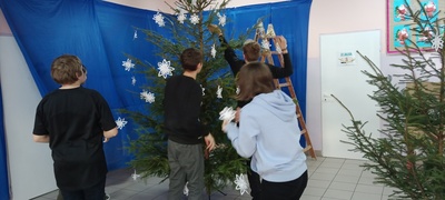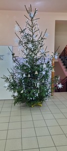 Czas Świąt Bożego Narodzenia wiąże się z tradycją ubierania świątecznego drzewka. W naszej szkole również nie mogło zabraknąć tego rytuału. Tuż przed wizytą św. Mikołaja uczniowie naszej szkoły zabrali się do ubierania choinki. W tym roku ozdoby wykonaliśmy sami. Na choinkach zawisły piękne gwiazdki️, kokardki i pierniczki. Na korytarzu "zapłonął" kominek w oczekiwaniu na wizytę Św. Mikołaja. W oknach pojawiły się zimowe dekoracje. Stanęła też piękna.
