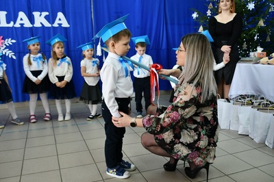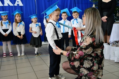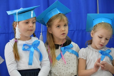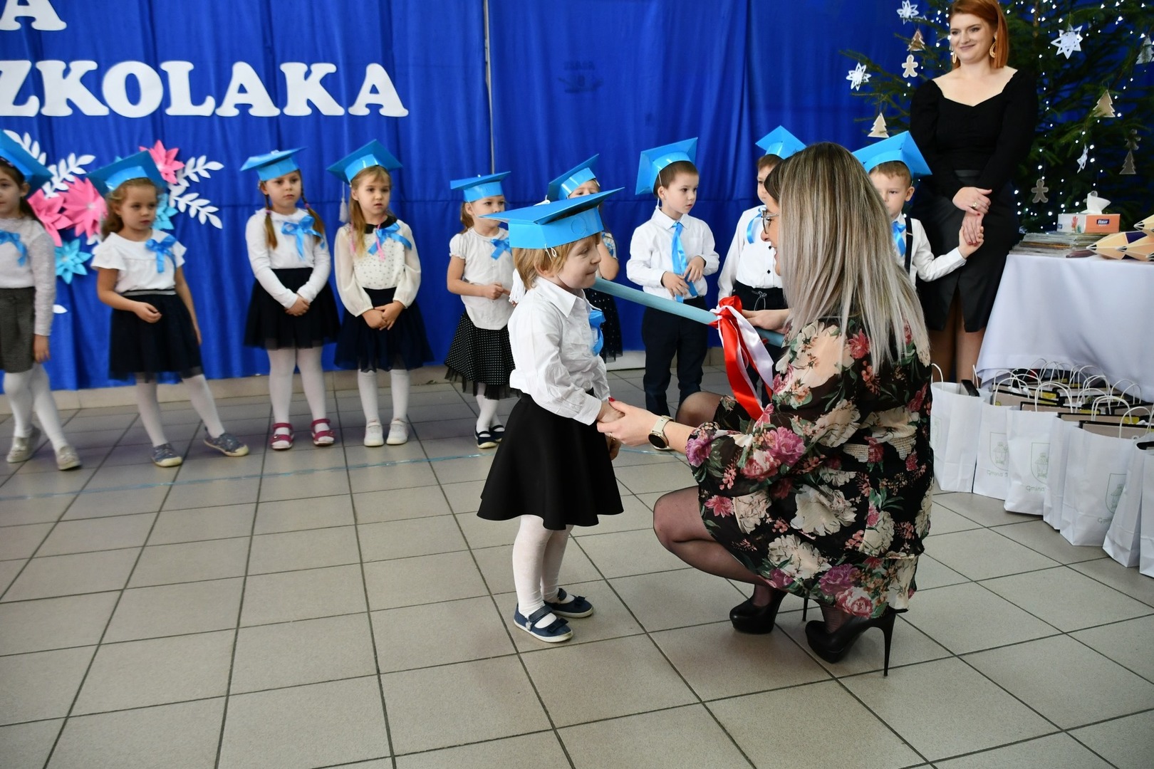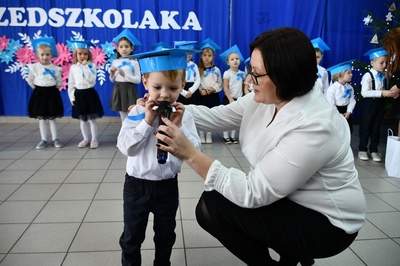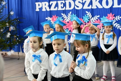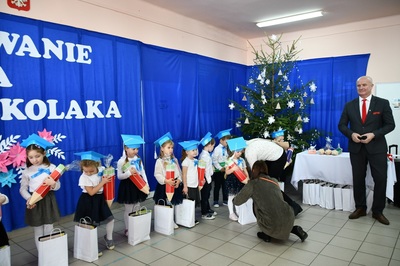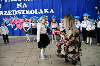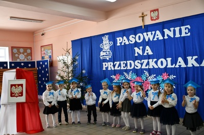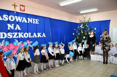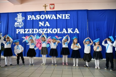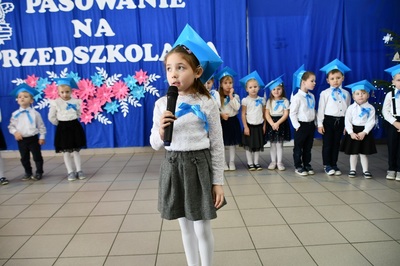 Powyższymi słowami mogą pochwalić się dzieci z młodszej grupy przedszkolnej, które 12 grudnia miały swoją długo wyczekiwaną uroczystość. Mowa oczywiście o ,,Pasowaniu na Przedszkolaka". Uroczystość rozpoczęła się od przemówienia Pani Dyrektor - Ilony Stolarz, która powitała zaproszonych gości, nauczycieli i rodziców, nie zapominając o głównych bohaterach dnia - przedszkolakach. Następnie maluchy zaprezentowały swój program artystyczny, który wzbudził niemały zachwyt wszystkich widzów. Występując przed publicznością, dzieci wykazały się nie tylko swoimi umiejętnościami, ale też niezwykłą odwagą. Bezbłędnie recytowały wiersze, śpiewały piosenki oraz tańczyły. Punktem kulminacyjnym było złożenie przyrzeczeń przez dzieci i ich rodziców, a następnie uroczyste pasowanie, poprzez symboliczne położenie ołówka na ramieniu każdego dziecka. Następnie przyszła kolej na wręczenie dzieciom pamiątkowych dyplomów i prezentów. Zwieńczeniem całej uroczystości było pamiątkowe zdjęcie. Po części oficjalnej, wszyscy uczestnicy uroczystości udali się na poczęstunek, przygotowany przez rodziców.
