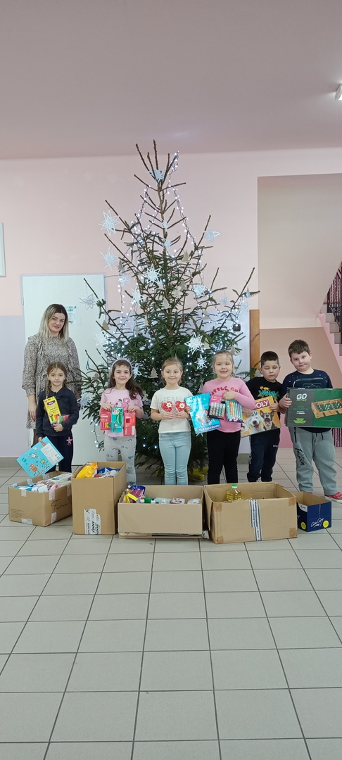 „Być może dla świata jesteś tylko człowiekiem, ale dla niektórych ludzi jesteś całym światem” chciałoby się powtórzyć za jednym z noblistów, widząc dar serca społeczności naszej szkoły dla potrzebujących. A konkretnie dla dzieci z naszej gminy, którym te święta nie będą się już kojarzyły ze smutkiem i pozwolą z godnością usiąść przy wigilijnym stole. Nie potrzeba aż tak wiele, wydawałoby się produkty pierwszej potrzeby: artykuły spożywcze, szkolne, środki czystości, higieniczne, może jakaś drobna zabawka, coś słodkiego. Niewiele? A jednak …
