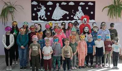 Wspaniała zabawa była ciekawym urozmaiceniem szkolnej codzienności. Zwykły poranek zamienił się w pogodny i wesoły dzień