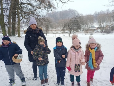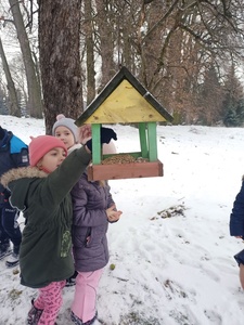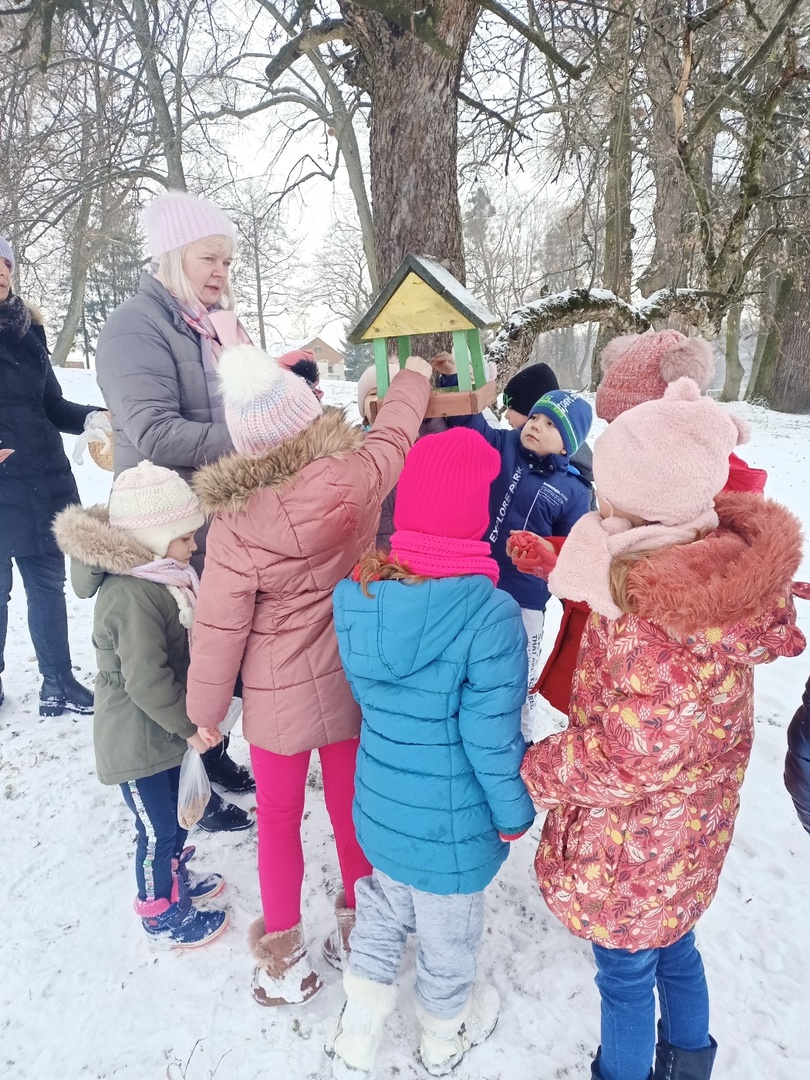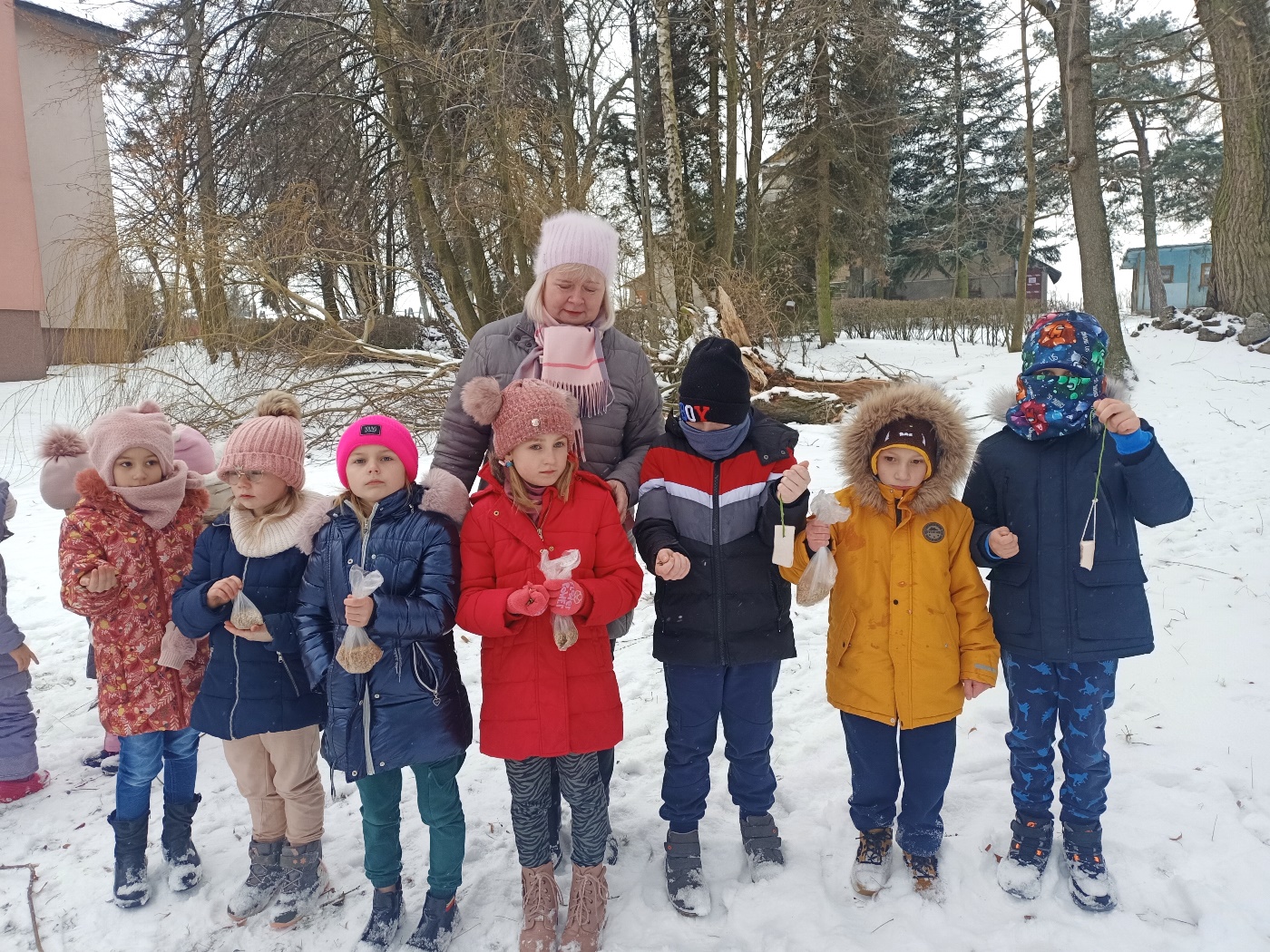 Kiedy łąki, pola, lasy znikają pod grubą warstwą śniegu, a na drzewach i krzewach coraz trudniej znaleźć pozostawione jesienią owoce, to najwyższa pora, aby pomóc naszym skrzydlatym przyjaciołom. Wiedzą o tym nawet przedszkolaki, które w towarzystwie nieco starszych pierwszoklasistów, 7 lutego, wybrały się do szkolnego ogrodu.