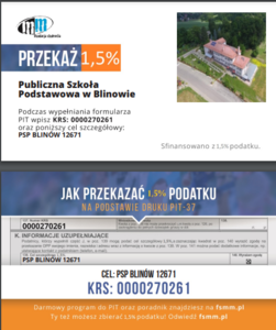 Informujemy, że istnieje możliwość przekazania 1,5% na zadania statutowe szkoły. Dziękujemy!