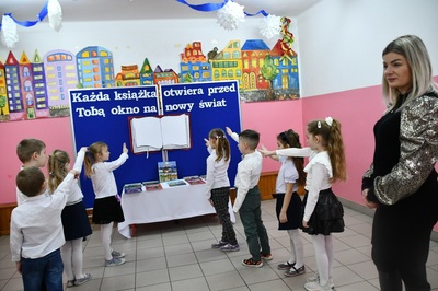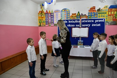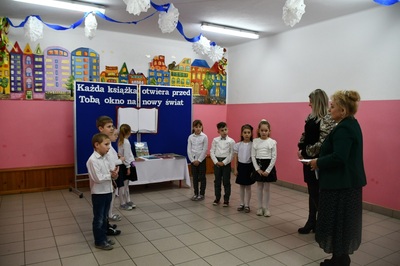 Głównym celem uroczystości było zachęcenie najmłodszych uczniów do korzystania z biblioteki szkolnej, wypożyczania książek oraz nieustannego rozwijania umiejętności czytania. Pasowanie na czytelnika to oficjalne przyjęcie uczniów do grona czytelników biblioteki. Zanim uczniowie złożyli przyrzeczenie, dowiedzieli się, jak należy dbać o książki i czego nie wolno robić podczas ich czytania. Pasowanie na czytelnika poprzedziła lekcja biblioteczna przeprowadzona przez bibliotekarkę Panią Henrykę Wielgus, która przekazała wiadomości na temat biblioteki i zasad jakie obowiązują czytelnika. Uczniowie klasy I po takim wprowadzeniu złożyli uroczyste przyrzeczenie, że zawsze będą szanować książki, a Pani Dyrektor Ilona Stolarz książką dokonała pasowania , wręczając każdemu uczniowi pamiątkową książkę i zakładkę do książki. Pamiątkowe zakładki do książki przekazali również starsi uczniowie z klasy III wykonane wspólnie z Panią Moniką Reszka. Z pewnością kolorowe książki i upominki będą im przypominać o tym uroczystym wydarzeniu.