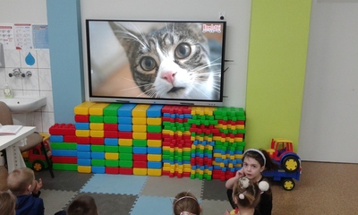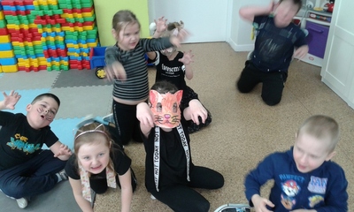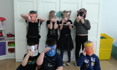 Kiedy więc nadszedł czas świętowania, przedszkolaki postanowiły się do nich upodobnić , by choć na chwilę, stać się kotkiem właśnie. Nie mogło też zabraknąć kocich zabaw, prac plastyczno – technicznych oraz zajęć, zagadek , filmów edukacyjnych i oczywiście obietnicy dbania o swoich domowych pupili, bo „szare, bure czy ponure – wszystkie koty za pan brat.”