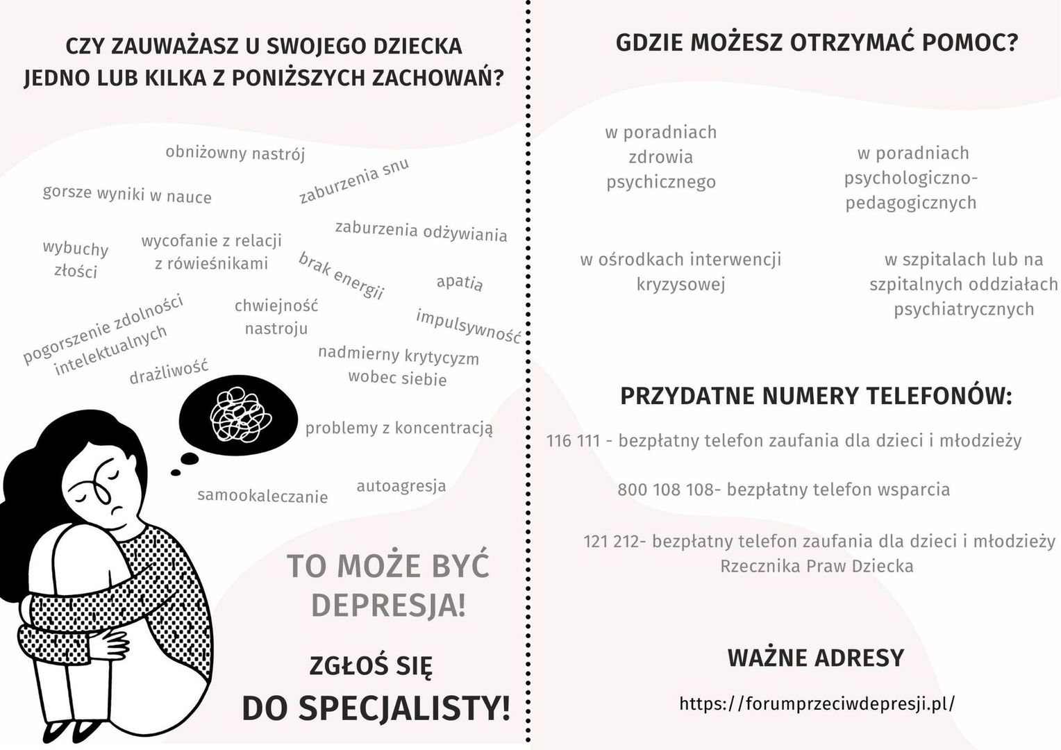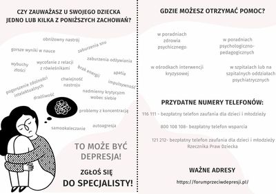 Jeżeli cokolwiek w zachowaniu Twoich bliskich Cię niepokoi, REAGUJ! SZUKAJ POMOCY! Depresję można SKUTECZNIE LECZYĆ!