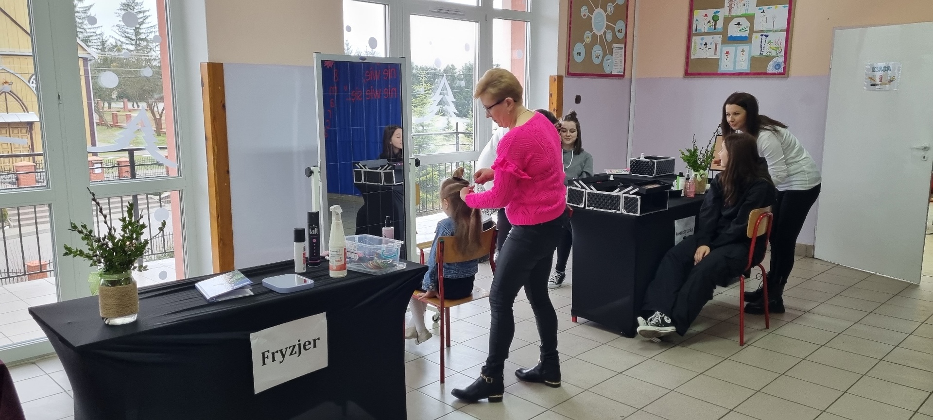 było doskonałą okazją do zapoznania dzieci z zawodami fryzjera i kosmetyczki, rozwijania