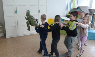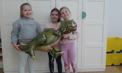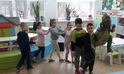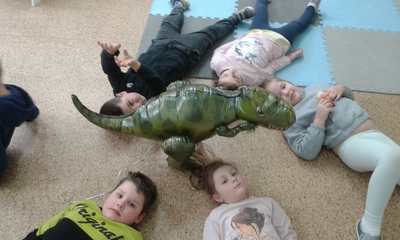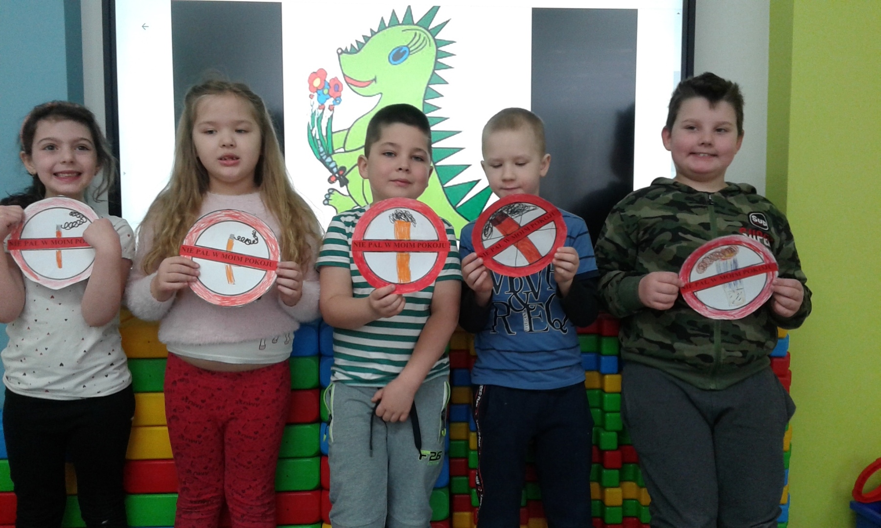 W MOIM POKOJU!” Oczywiście nie obyło się bez przeprowadzenia cyklu zajęć dydaktycznych o tematyce antynikotynowej, które rozpoczęły się wycieczką w poszukiwaniu źródeł dymu. Podczas kolejnych dzieci starały się odpowiedzieć na pytania: „Co i dlaczego dymi?”, „Jak się czuję, kiedy dymi papieros?” czy „Co się dzieje, kiedy ludzie palą papierosy?”, by wreszcie dowiedzieć się, jak unikać dymu papierosowego. Swoje spostrzeżenia przelewały na papier wykonując plakaty, tańcząc przy dźwiękach muzyki klasycznej, bawiąc się z dinozaurem w rytm piosenki „Zielony Dinek” czy kolorując jego podobiznę.