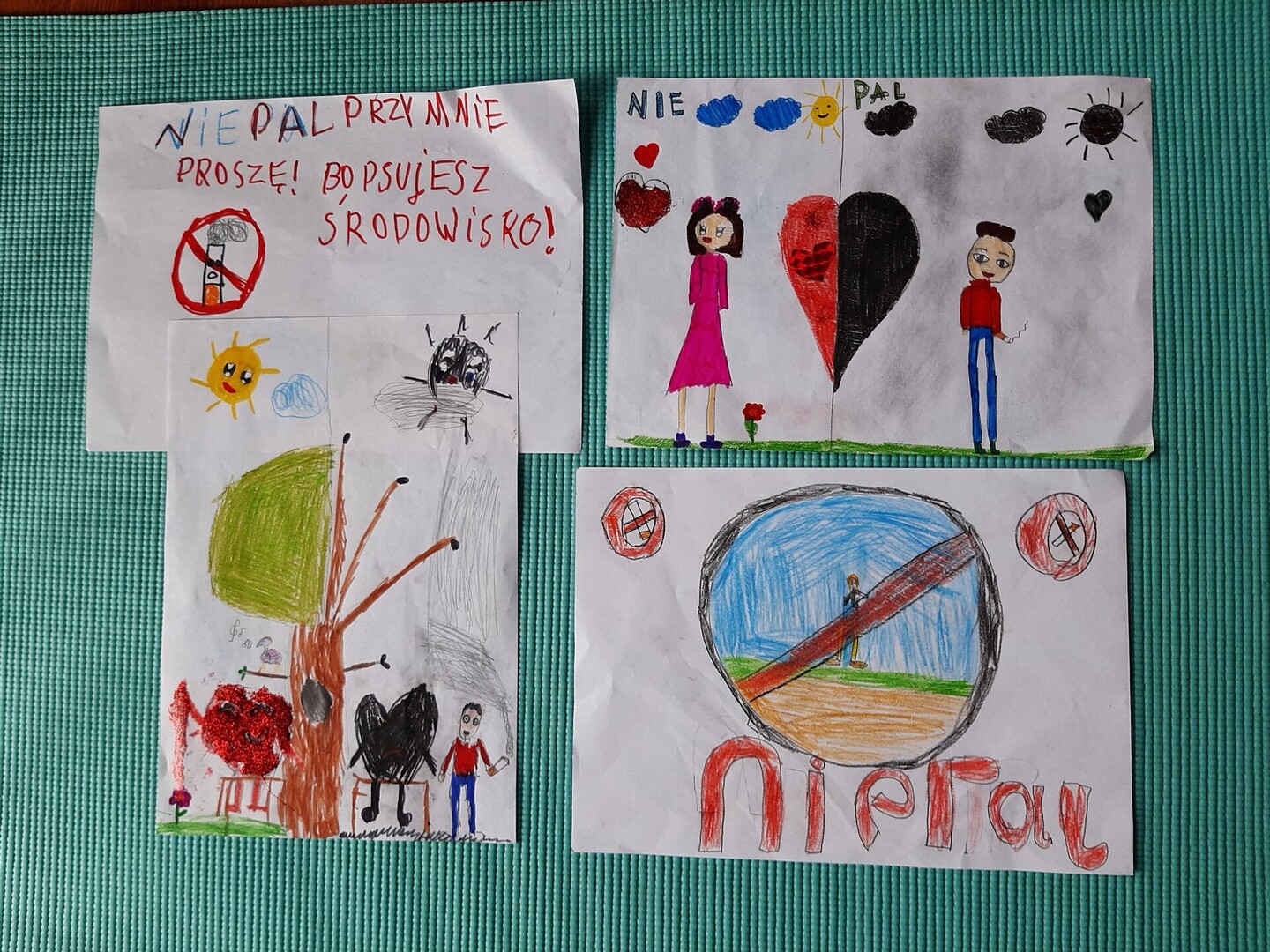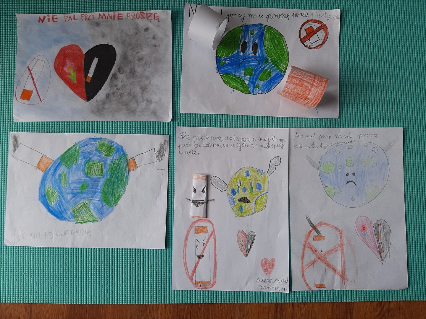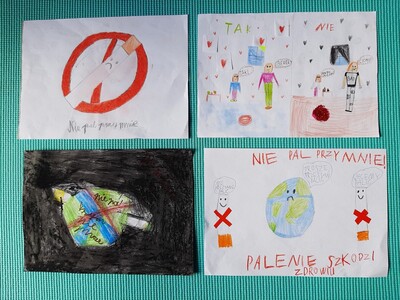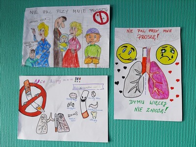 W ramach programu edukacji antytytoniowej „Nie pal przy mnie, proszę” w klasach I-III został przeprowadzony cykl zajęć dotyczących zdrowia oraz szkodliwości palenia. Celem głównym programu było zmniejszenie narażenia dzieci na bierne palenie tytoniu. Podsumowaniem zajęć był szkolny konkurs plastyczny pod hasłem „NIE PAL PRZY MNIE, PROSZĘ”. Spośród dostarczonych 17 prac komisja przyznała następujące miejsca: