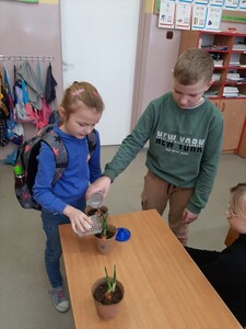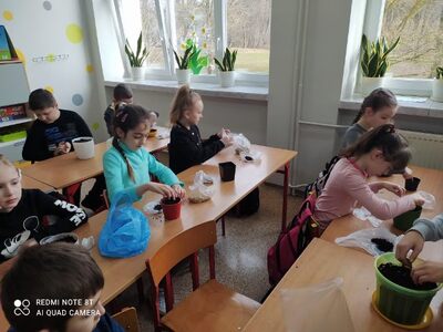 W marcu wraz z nadejściem wiosny, dzieci z klas I-III bardzo chętnie włączyły się w tworzenie przyrodniczych kącików zieleni w salach lekcyjnych. 20 marca uczniowie należący do koła przyrodniczego : „ Wiewiórka” samodzielnie zasiały nasiona i zasadziły cebulki kwiatów i cebulę na szczypiorek zakładając tym samym hodowlę na parapecie w każdej klasie. Uczniowie podczas zajęć edukacyjnych dowiedziały się jakie są niezbędne warunki do rozwoju roślin. Nasze kąciki przyrodnicze w sali, to doskonałe miejsce do prowadzenia bezpośredniej obserwacji roślin podczas której, dzieci poznają cykl rozwojowy roślin oraz uczą się systematyczności w pielęgnowaniu i codziennym podlewaniu kiełkujących nasion. Uczniowie klasy III sadziły cebulki kwiatów i siały nasiona kwiatów, uczniowie klasy II siały owies natomiast pierwszaki sadziły cebulę na szczypiorek. Młodym przyrodnikom bardzo spodobało się samodzielne zakładanie hodowli. Wiosenne prace w klasach i zajęcia edukacyjne: „Od nasionka do rośliny” uczą dając przy tym dzieciom wiele radości i satysfakcji. Dzieci obserwując takie hodowle roślin będą mogły obserwować i brać udział w codziennej pielęgnacji zasianych nasion.
