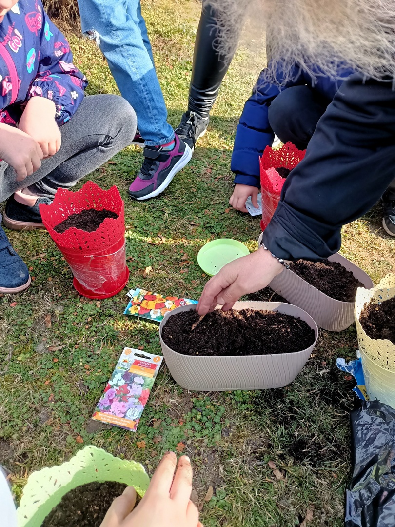 Wiosenne sadzenie roślin w szkole i zajęcia edukacyjne: „Od nasionka do roślinki”.