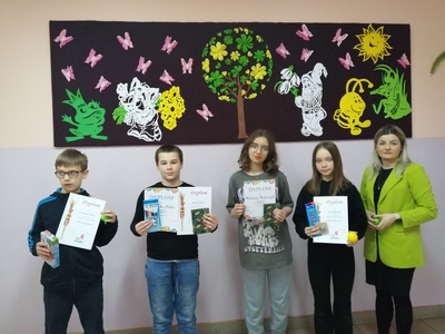 Wyróżnienia: Wojciech Bielas (kl.V), Julia Kiszka (kl.VI), Lena Kiszka (kl.IV), Malwina Mularczyk (kl.V)