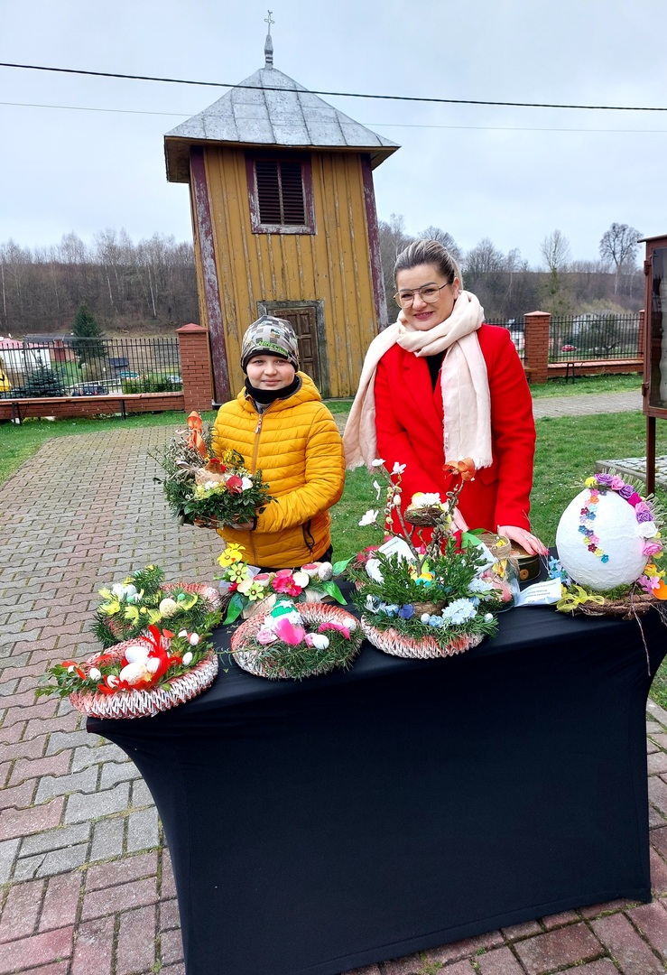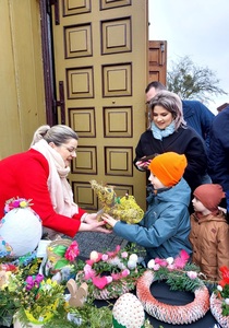 Kiermasz Wielkanocny zorganizowany w Niedzielę Palmową przy naszym kościele parafialnym wprowadził całą społeczność lokalną w nastrój wiosenno – świąteczny. Piękne, własnoręcznie wykonane przedmioty zwiastujące wiosnę oraz rozmaite ozdoby wielkanocne można było zakupić , tj.: jajka, króliczki, kurczaki, wianuszki, stroiki, koszyczki.