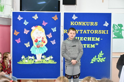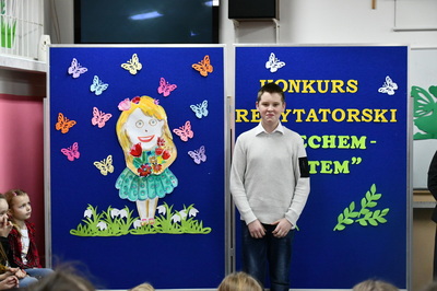 W konkursie udział wzięło 16 recytatorów z kl. I-VI. Wiersze były wesołe i barwnie zaprezentowane.