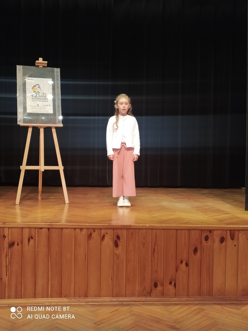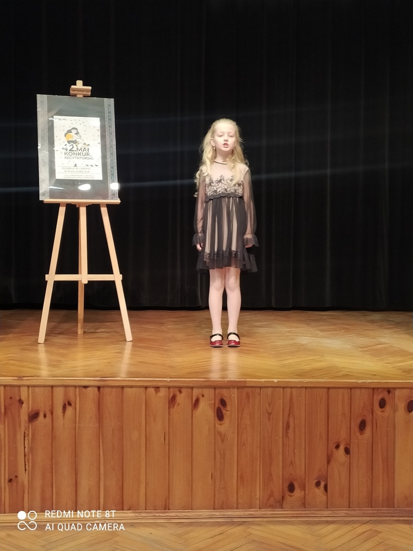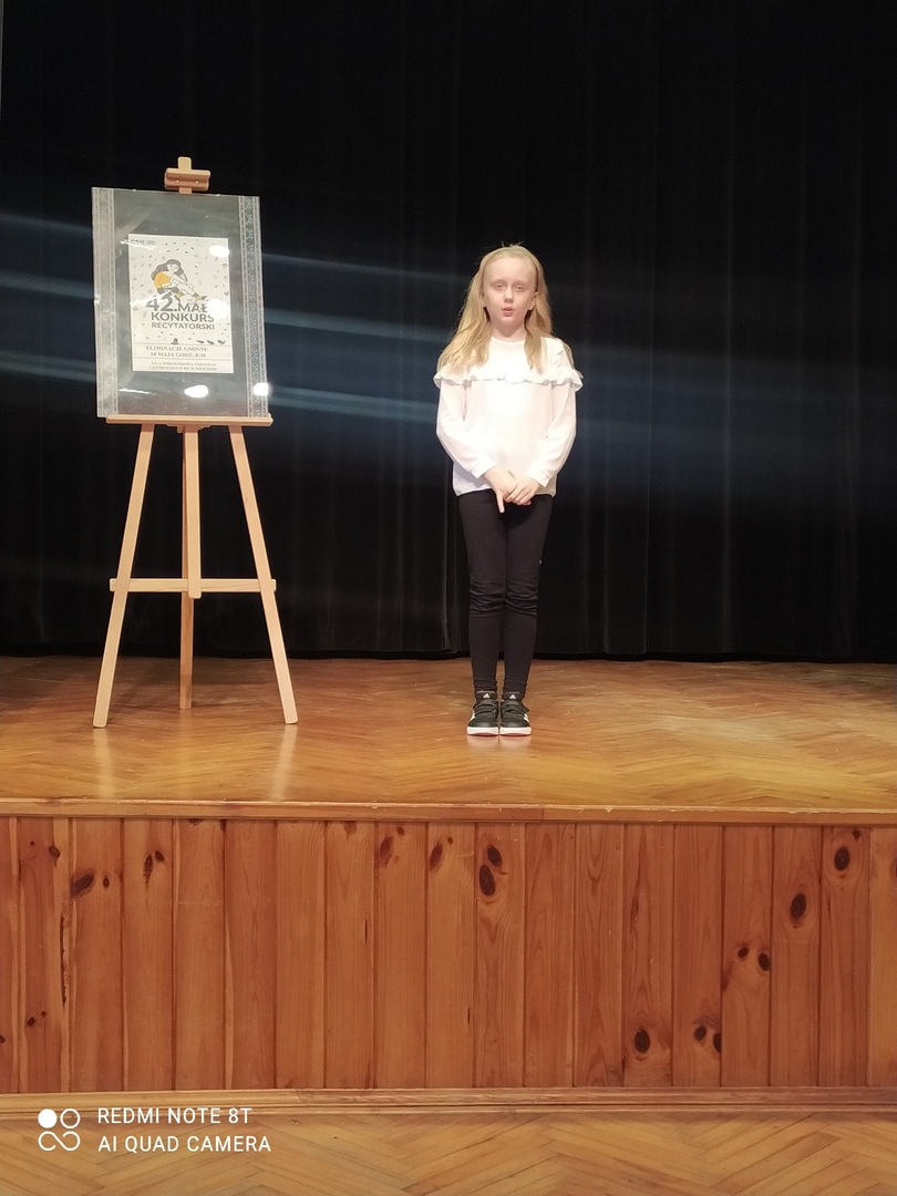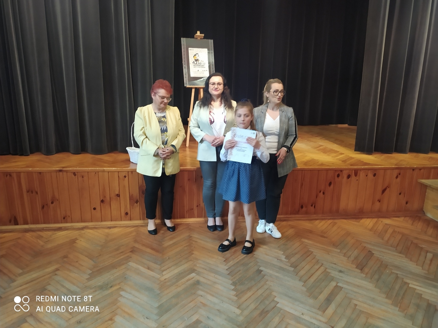 W dniu 18. 05.2023r. w GCK w Polichnie odbyły się gminne eliminacje do 42 Małego Konkursu Recytatorskiego. Nasza szkołę reprezentowały: Kozik Anielka- kl.I, Ptaszek Oliwia- kl. II, Chmiel Hanna- kl.II, Patrycja Chmiel- kl.II, Amelia Kiszka-kl.II, Nikola Samojedna-kl.II, Wiktoria Żmudziak- kl.III, oraz Alicja Mysłowska- kl.V. Wszyscy uczestnicy eliminacji otrzymali nagrody książkowe oraz pamiątkowe dyplomy. Nominację na etap powiatowy, który odbędzie się 6 czerwca w Dzierzkowicach zdobyła uczennica klasy drugiej- Oliwia Ptaszek. Wszystkim dziękujemy za wysiłek włożony w przygotowanie się do konkursu a naszej laureatce gratulujemy i życzymy powodzenia na etapie powiatowym.