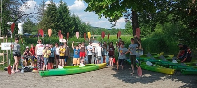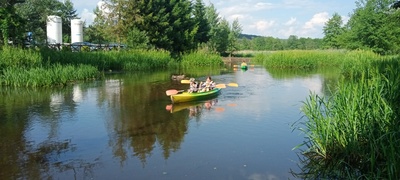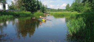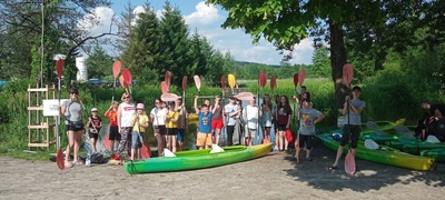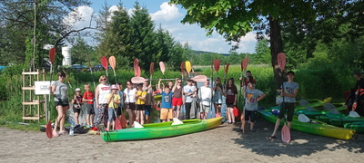 Po tej atrakcji zjedliśmy pyszną pizzę i przejechaliśmy do Hutek a tam nadszedł najbardziej wyczekiwany moment naszej wycieczki – spływ kajakami rzeką Wieprz. Dla większości był to pierwszy spływ w życiu. Każdy był podekscytowany. Na początku trasy było ciężko, lecz z czasem nabraliśmy wprawy i pokonywaliśmy rzekę coraz lepiej. Bardzo dobrze się bawiliśmy i nabraliśmy nowych doświadczeń.