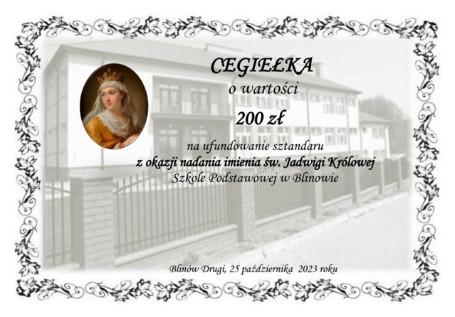 Szanowni Rodzice, Mieszkańcy, zwracamy się z prośbą o wsparcie naszej inicjatywy związanej z nadaniem imienia św. Jadwigi Królowej – Szkole Podstawowej w Blinowie.