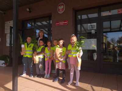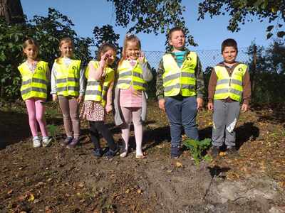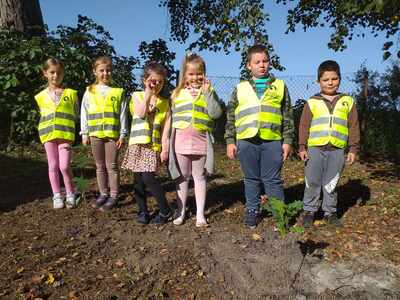 W ramach ogólnopolskiej akcji #sadziMY! uczniowie klasy I z naszej szkoły posadzili dzisiaj otrzymane z Nadleśnictwa Kraśnik sadzonki drzew: sosny, modrzewia, świerka, dębu i klonu. Młode drzewka zostały posadzone na terenie naszej szkoły.