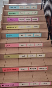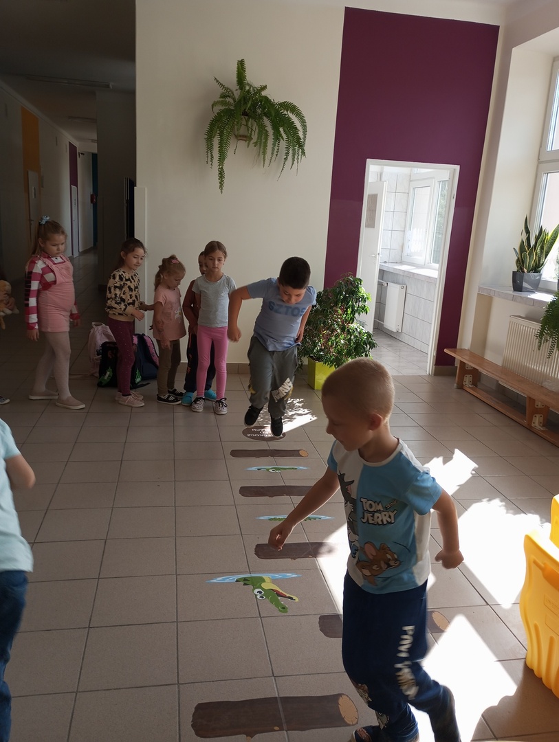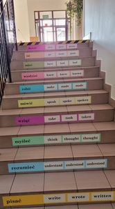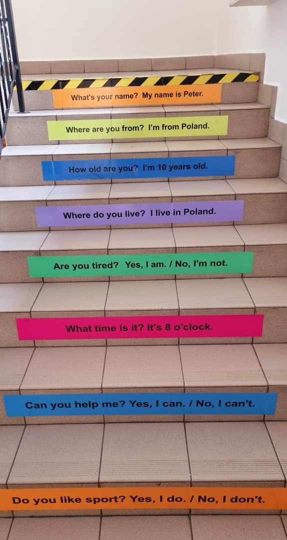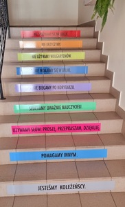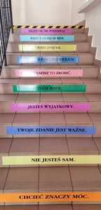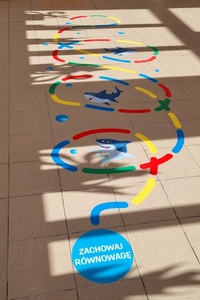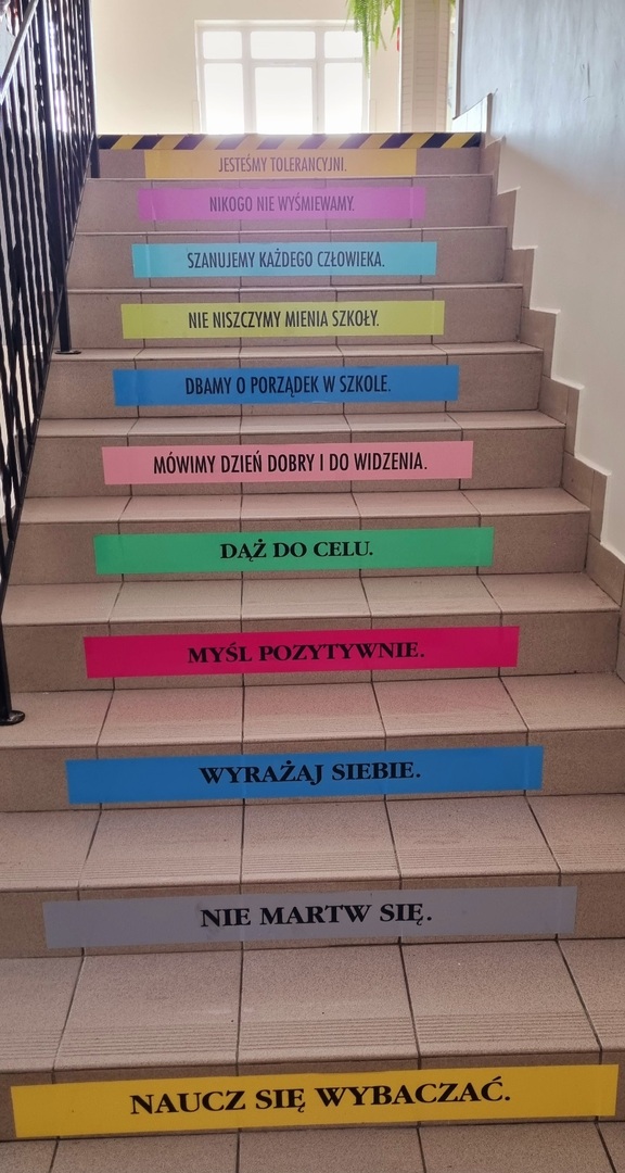 Gry korytarzowe i naklejki edukacyjne zagościły w naszej szkole i stały się dopełnieniem wyglądu odnowionych korytarzy. Gry w wersji na podłogę korytarza szkoły cieszą się dużą popularnością wśród naszych uczniów, zwłaszcza najmłodszych. To świetny sposób na zdrową rywalizację i fantastyczną zabawę podczas przerw lekcyjnych. Naklejki edukacyjne na schody oprócz walorów estetycznych są również „pożyteczne”, ponieważ stopnie schodowe w kolorowej opcji przyciągają wzrok ćwicząc tym samym umysł i spostrzegawczość. Niezwykle istotne są też zdania motywacyjne, bo któż nie chciałby na dzień dobry przeczytać „CHCIEĆ TO ZNACZY MÓC” czy „JESTEŚ WYJĄTKOWY”.