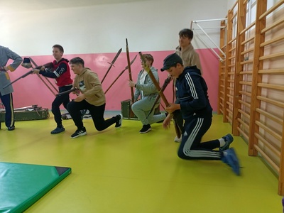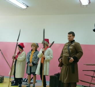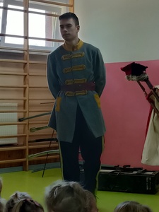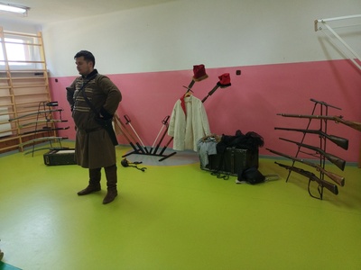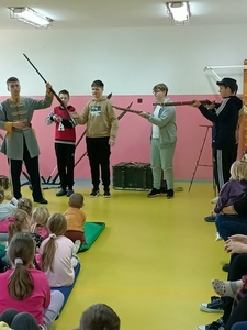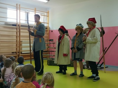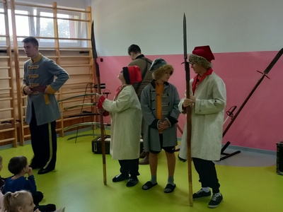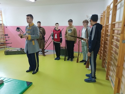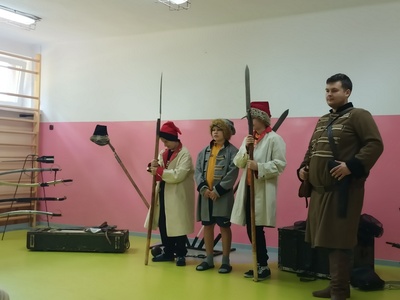 Aktorzy z grupy Rekonstrukto - umundurowani i uzbrojeni jako „powstańcy styczniowi” - przedstawili uczniom kolejne polskie zbrojne zrywy niepodległościowe: Powstanie kościuszkowskie, utworzenie Legionów Polskich we Włoszech, walki u boku Napoleona i Powstanie listopadowe. Szczególne miejsce w tym pokazie zajęło Powstanie styczniowe trwające w latach 1863-1864 i będące najdłuższym polskim niepodległościowym powstaniem zbrojnym, w którym stoczonych zostało aż 1200 bitew i potyczek. Prowadzący pokaz zwrócili uwagę, iż pomimo kolejnego niepowodzenia zbrojnego i represji ze strony zaborców, nigdy nie wygasła w sercach naszych rodaków potrzeba życia w wolnej Polsce. Pokaz historyczny „Powstanie styczniowe” był tym cenniejszy, gdyż w tym roku obchodzimy 160. rocznicę jego wybuchu.