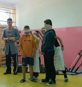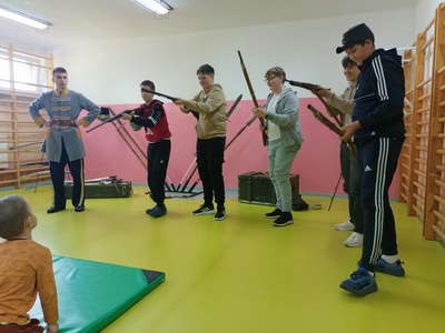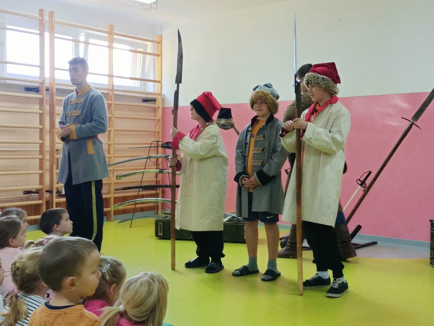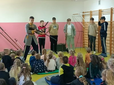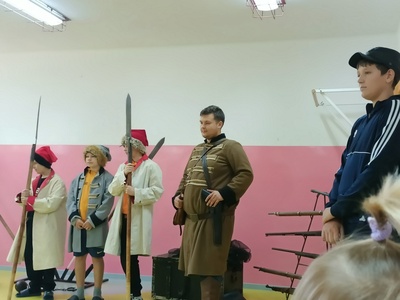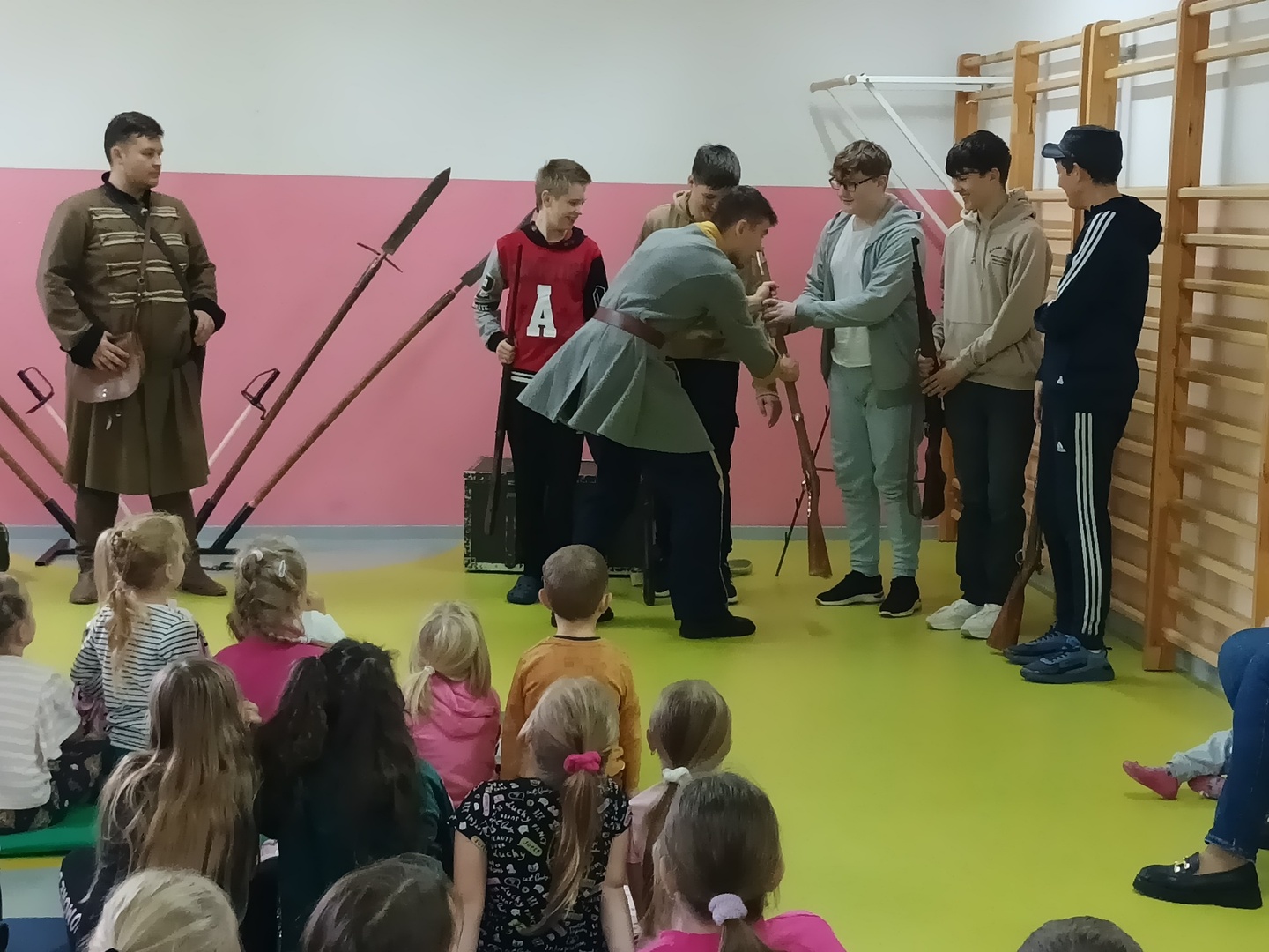 Spotkanie znacząco uatrakcyjniło bezpośrednie zaangażowanie naszych uczniów w opowiadane wydarzenia. Nasi wychowankowie mogli z bliska zapoznać się z umundurowaniem i uzbrojeniem wykorzystywanym w dawnych czasach. Ta „żywa lekcji historii” mocno zaangażowała emocje naszej społeczności, dzięki którym na dłużej pozostanie w pamięci wiedza o tym wydarzeniu.