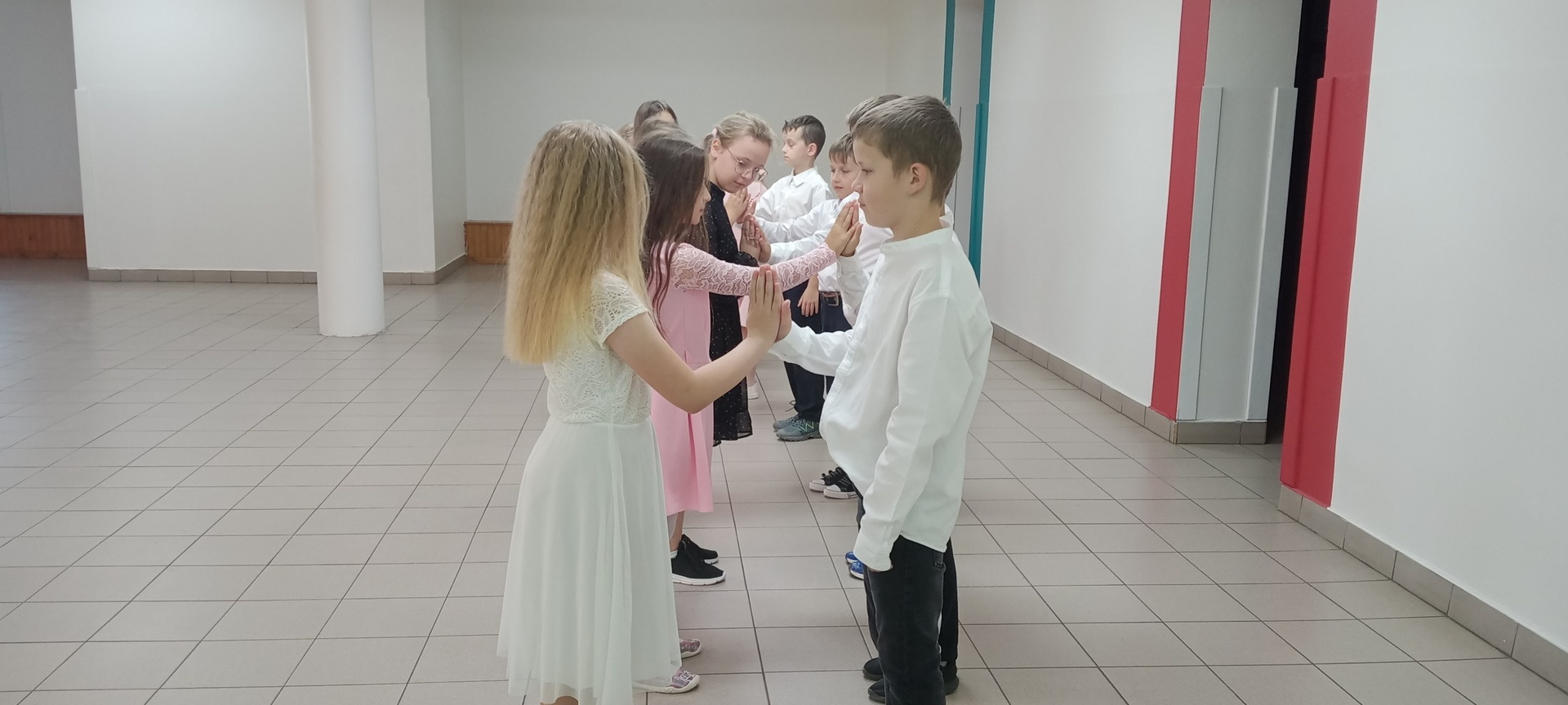 Klasa III tanecznym krokiem tańca dworskiego wkroczyła do przygotowań związanych z uroczystością nadania imienia szkole. We wrześniu dzieci poznały także średniowieczny taniec integracyjny ,,Praczki”.
