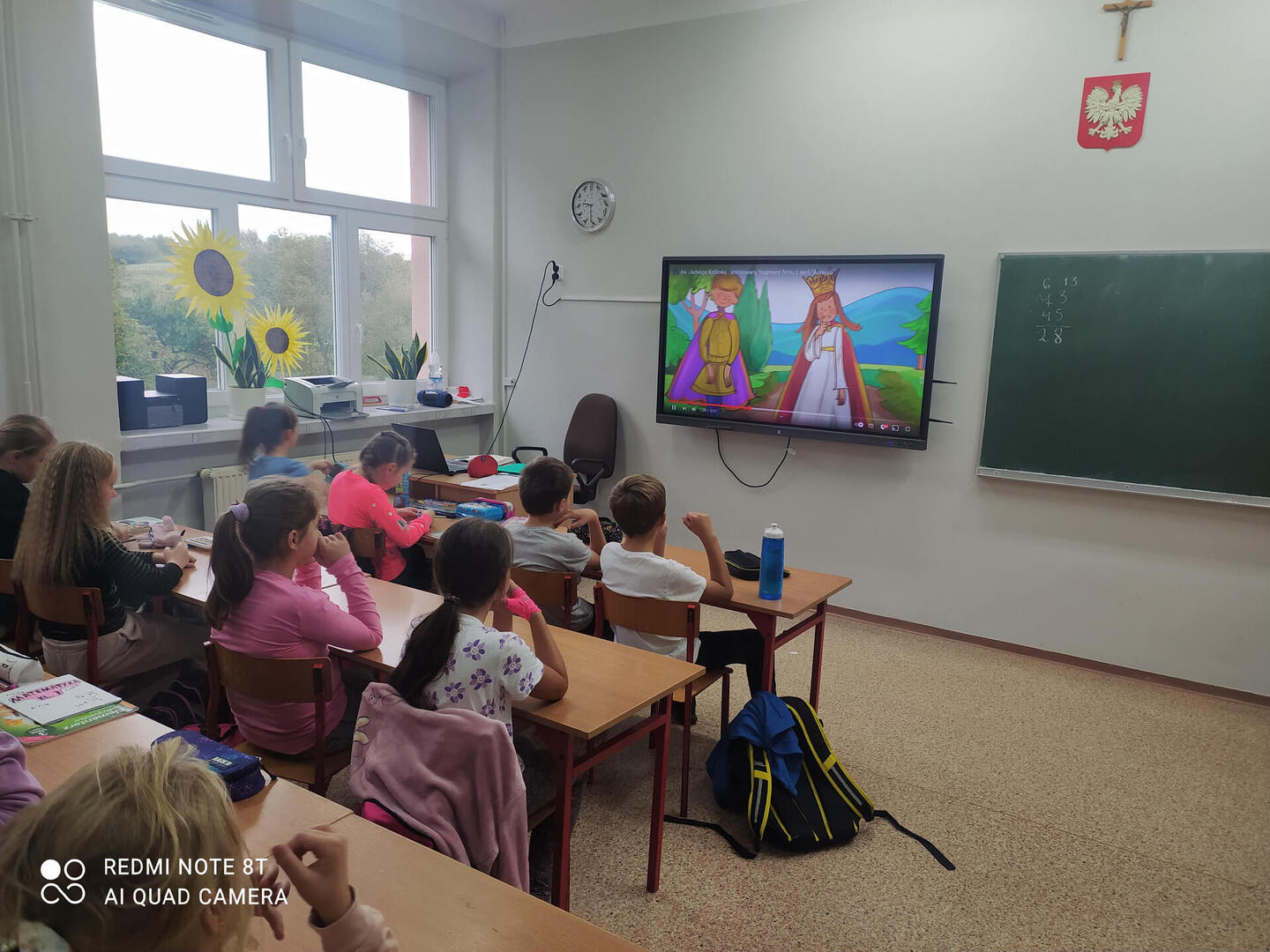 9 października w klasie zorganizowany został Dzień Patrona. Uczniowie poznając ,,Najpiękniejsze opowiadania i legendy o św. Jadwidze ‘’wzbogacili swoją wiedzę na temat naszej przyszłej patronki. Po wysłuchaniu legendy ,,Stopka Królowej Jadwigi’’ oraz obejrzeniu filmów edukacyjnych pięknie pokolorowały przygotowane kolorowanki. Podsumowaniem zajęć było wspólne wykonanie lapbooka o naszej patronce, którego poszczególne elementy uczniowie przygotowywali wraz ze swoimi rodzicami.