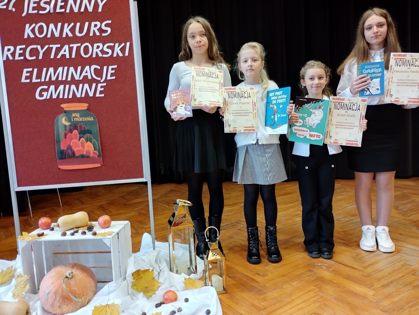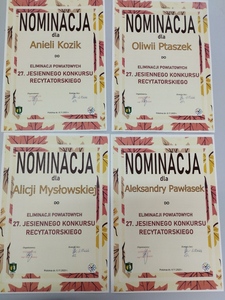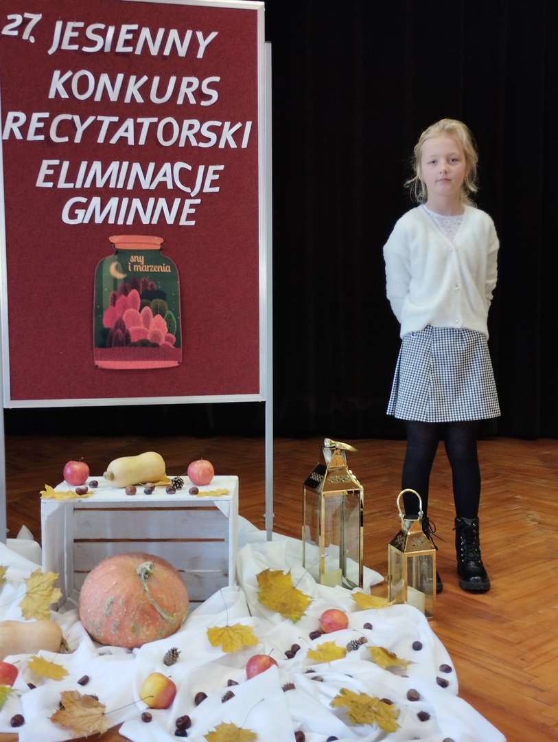 Dnia 6 listopada 2023 roku w sali Gminnego Centrum Kultury w Polichnie odbyły się gminne eliminacje do 27. Jesiennego Konkursu Recytatorskiego. Wspólnym tematem wszystkich poniedziałkowych występów były „Sny i marzenia”. Naszą szkołę reprezentowały następujące uczennice: