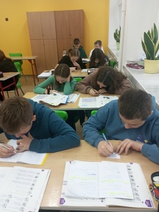 Rozpoczęliśmy wykonaniem okolicznościowej gazetki na korytarzu i przesłaniem za pomocą portali społecznościowych listu otwartego do Rodziców. Na lekcjach matematyki rozwiązywaliśmy zagadki, quizy, rebusy i krzyżówki utrwalające tabliczkę mnożenia. Wykorzystywaliśmy do tego celu także portale internetowe tj. Matzoo.pl.