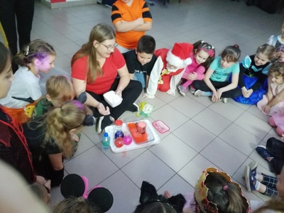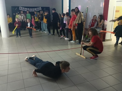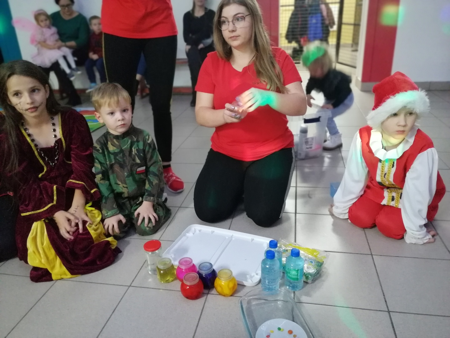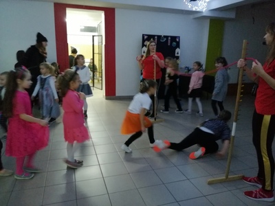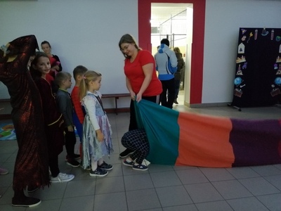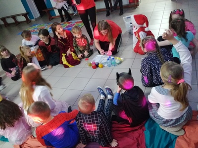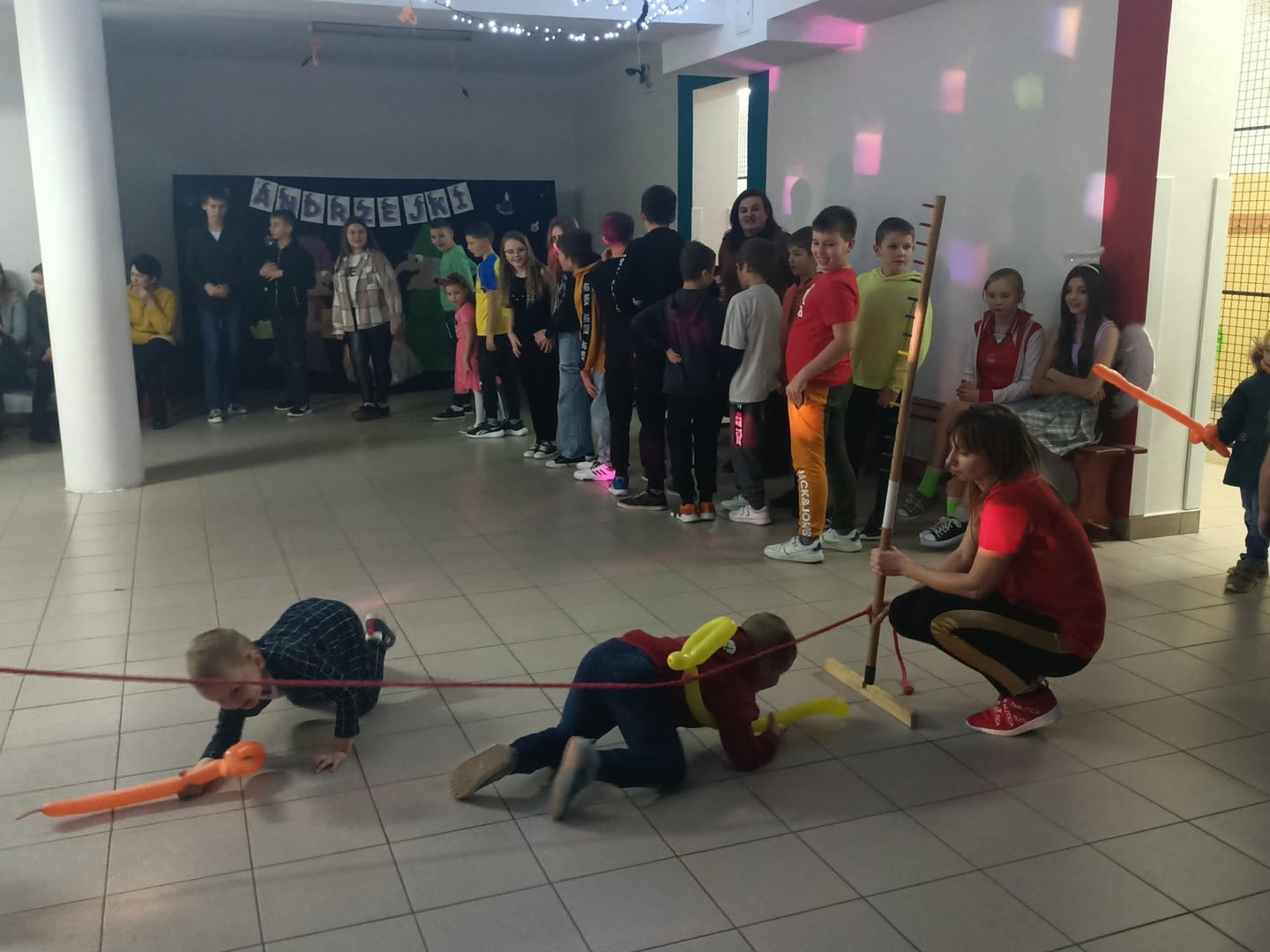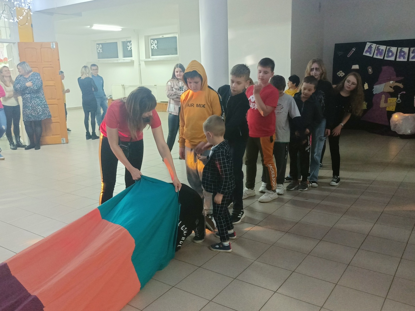Jako pierwsze zabawę andrzejkową rozpoczęły dzieci z oddziałów przedszkolnych i klas I-III. Zabawy, radości oraz uśmiechu było bardzo wiele, głównie za sprawą Pań animatorek, o które zadbała nasza szkolna Rada Rodziców. Dzieci bardzo chętnie uczestniczyły w zabawach. Było m.in.: przechodzenie pod liną, zabawy z chustą animacyjną, eksperymenty i wiele innych atrakcji.