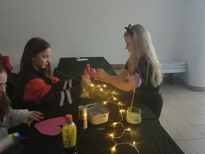 Po pożegnaniu dzieci młodszych dzieci, przyszła kolej na uczniów klas starszych, którzy przy rytmach różnorodnej muzyki, a także uczestnicząc w zabawach zorganizowanych przez Panie animatorki bawili się wyśmienicie. Podczas tego wyjątkowego wieczoru, uczestnicy zabawy nie zapomnieli o kultywowaniu tradycji andrzejkowych i z ciekawością brali udział w różnego rodzaju wróżbach, których bogatą ofertę przygotował nasz Samorząd Uczniowski.