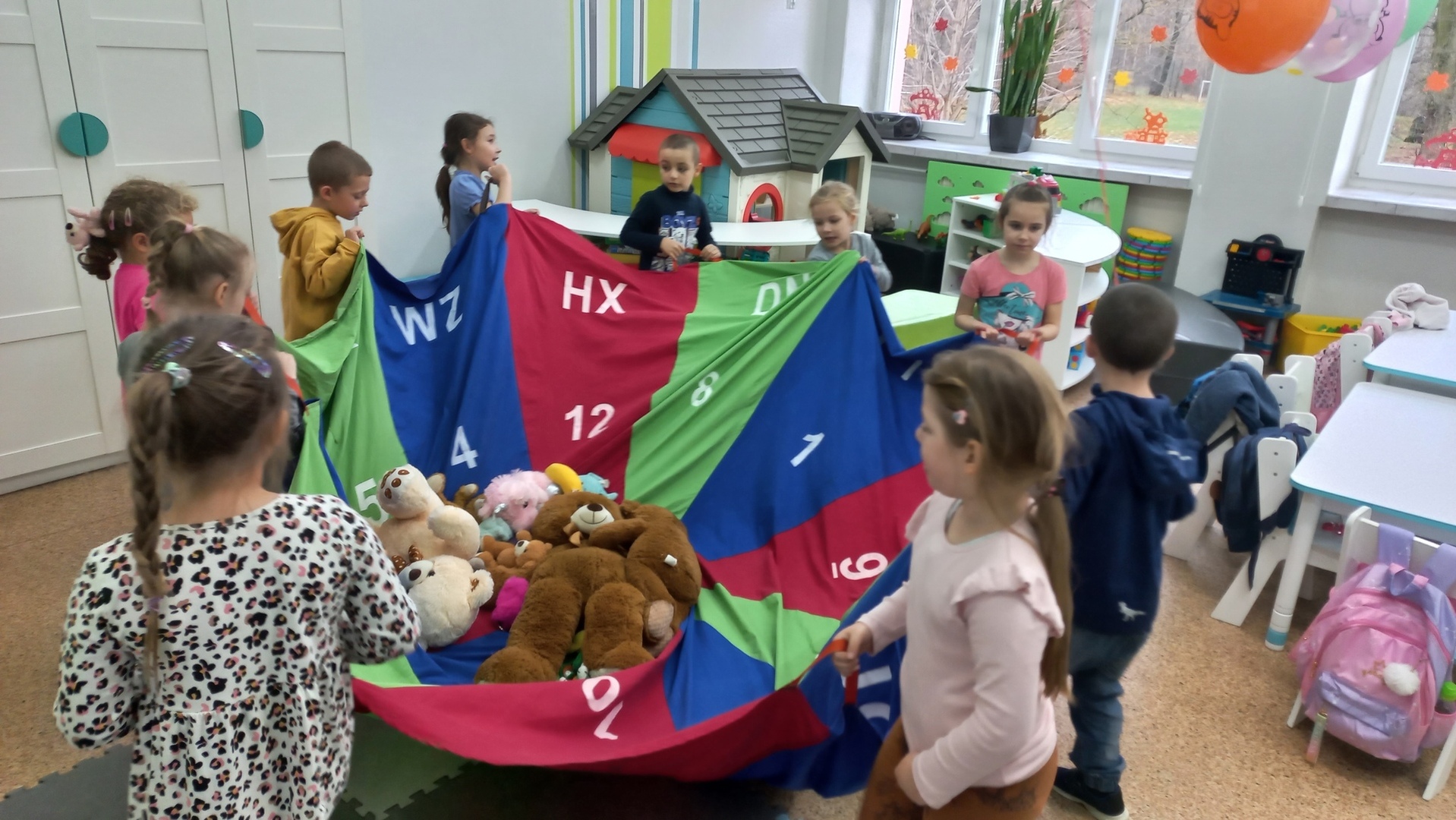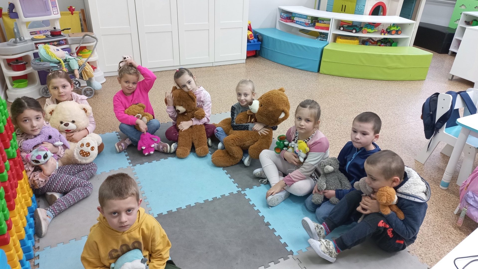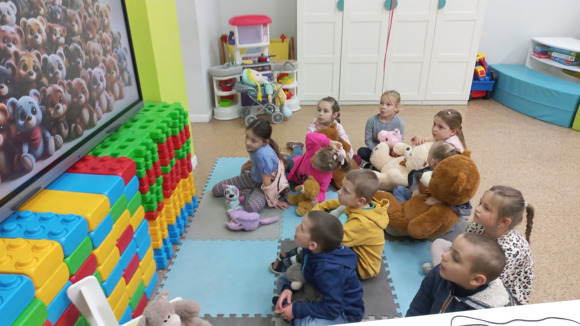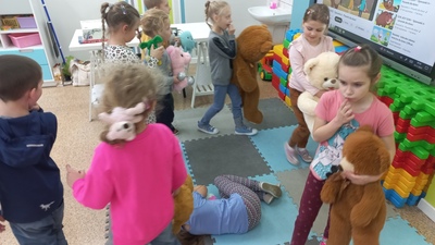 Duże, małe, kolorowe, puchate i mięciutkie. Pluszowe misie, bo o nich właśnie mowa, 24 listopada opanowały przedszkole. Przybyły ze swoimi właścicielami, aby wspólnie bawić się i świętować, w ramach obchodów Światowego Dnia Pluszowego Misia. W „misiowej” krainie czekało na nie wiele atrakcji, bo każde dziecko chciało udowodnić swoją bezgraniczną miłość i przyjaźń. I tak zaczęła się zabawa. Wspólne poznawanie historii święta, zajęcia dydaktyczne, konkursy, quizy, zgadywanki, prace plastyczne i „misiowe” tańce. Mając takie towarzystwo z pozoru trudne zadania okazały się błahostką, tańce i zabawy ruchowe sprawiały większą przyjemność, a ciasteczka lepiej smakowały i podejrzanie szybko znikały z talerzy. No cóż, nie ma w tym nic dziwnego, bo „czy to jutro, czy to dziś, wszystkim jest potrzebny miś.”